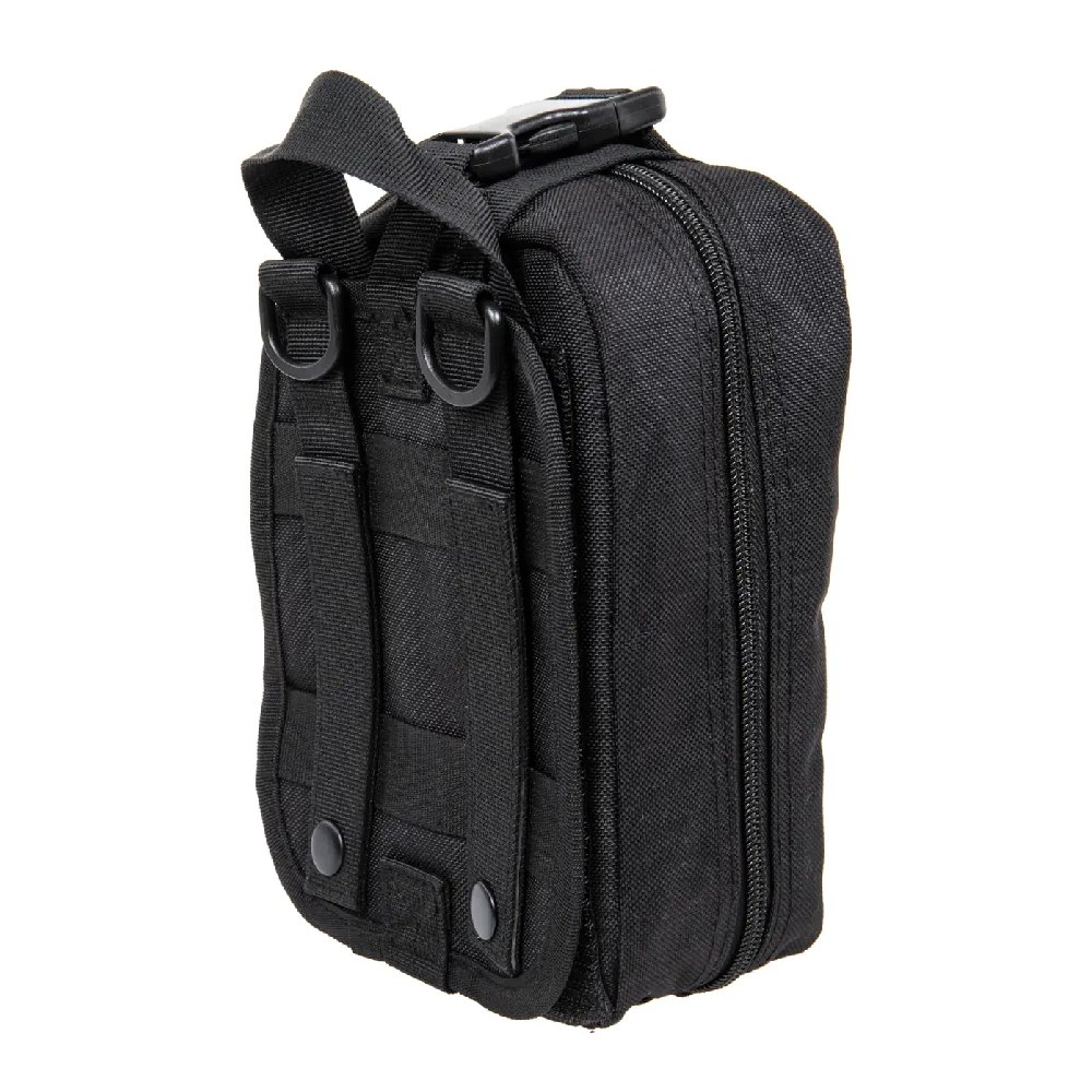 Apteczka jest w pełni kompatybilna z systemem MOLLE, co pozwala na zamocowanie jej na kamizelce taktycznej, pasie, plecaku lub panelu udowym. System rzepowy umożliwia błyskawiczne wypięcie apteczki w razie potrzeby, co jest niezwykle ważne w dynamicznych sytuacjach terenowych.
