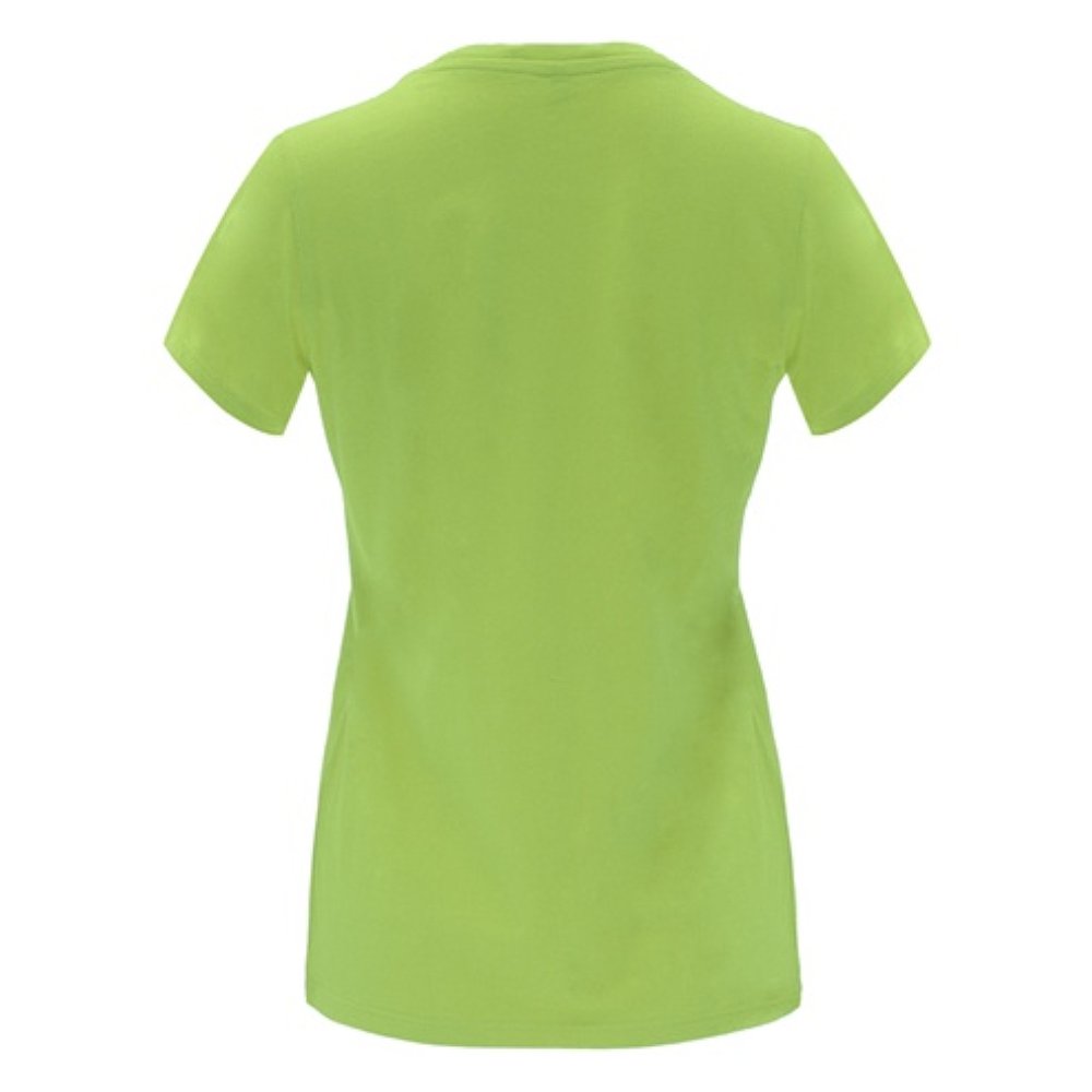 Model posiada krótki rękaw oraz okrągły prążkowany dekolt 1×1, który zachowuje swój kształt nawet po wielokrotnym praniu. Dopasowany krój podkreśla sylwetkę, nie powodując uczucia ucisku ani ograniczenia ruchów.