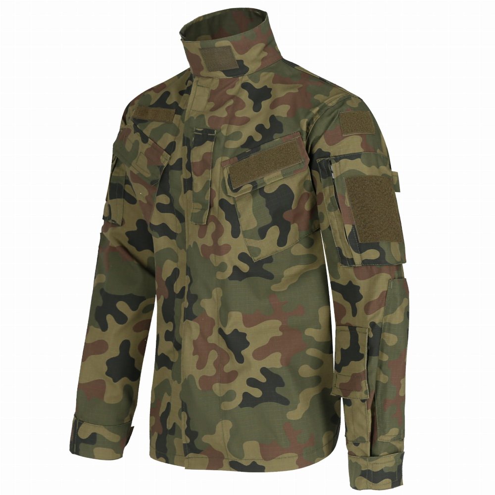 Bluza taktyczna wojskowa ATP Maxtex – PL Woodland, odporna na przetarcia, z rzepami velcro i kieszeniami. Zgodna z wytycznymi MON, 65% poliester, 35% bawełna.