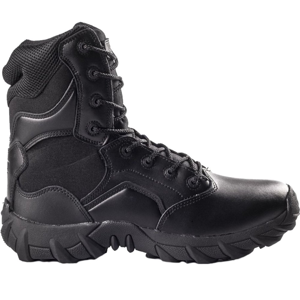 Buty Magnum Cobra 8.0 Czarne – lekkie i wytrzymałe buty wojskowe ze skóry licowej i nylonu 900D. Oddychające, antypoślizgowe, odporne na oleje, z antybakteryjną wkładką.