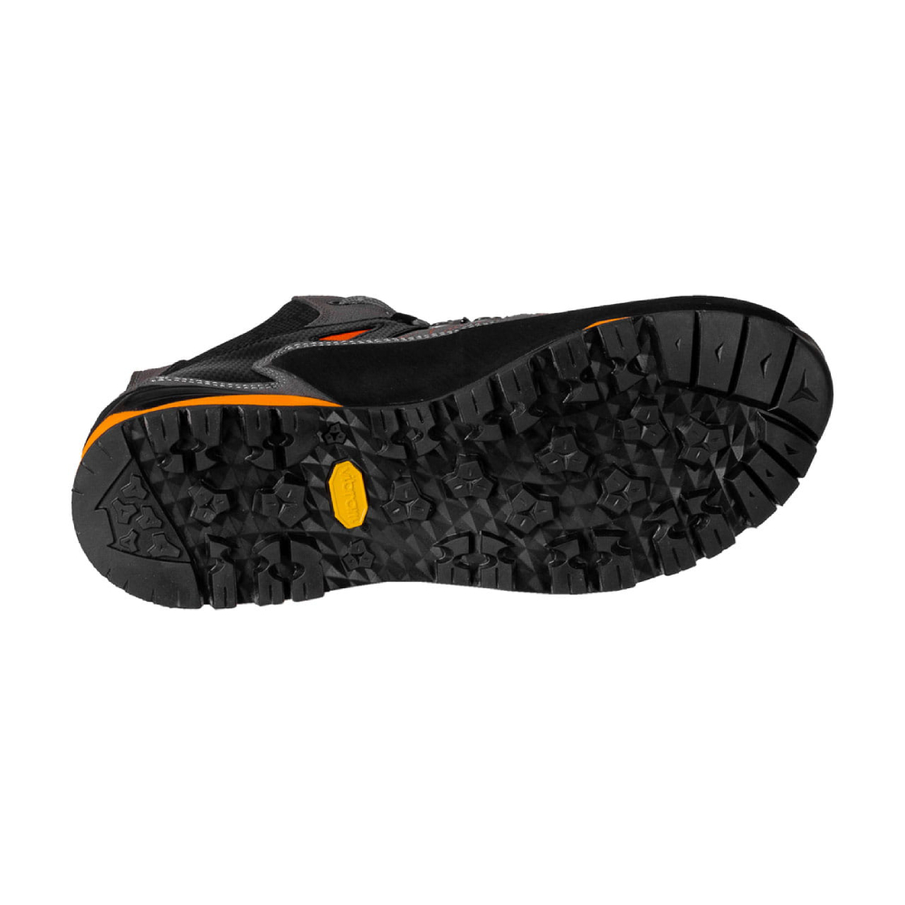 Wysokozaawansowane buty podejściowe Alpinus The Ridge Mid Pro. Skóra Perwanger, podeszwa Vibram® Pepe i membrana Hydrotex. Maksymalna stabilizacja i przyczepność w trudnym terenie.