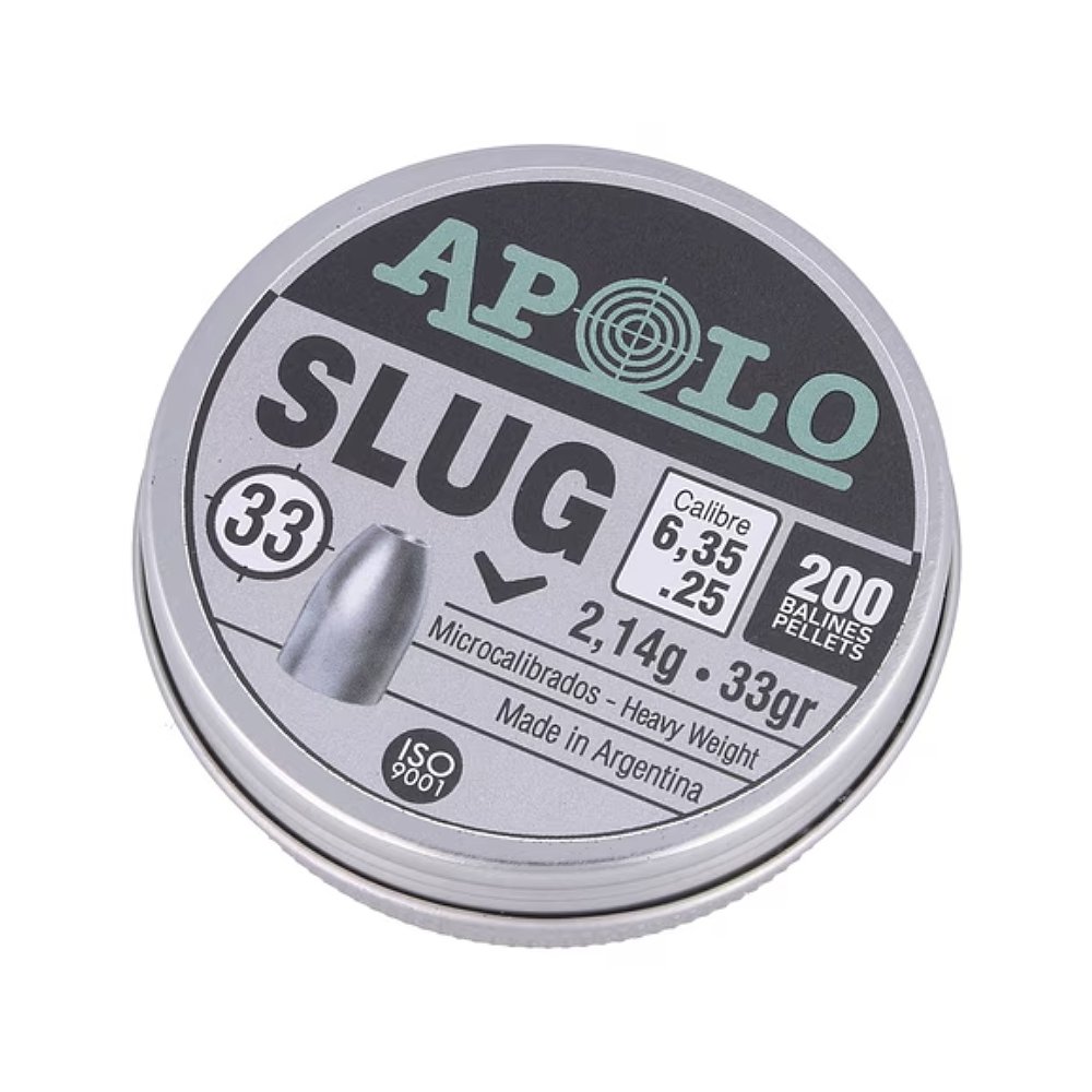 Ciężki śrut Apolo Slug 6,35 mm do mocnych karabinków FAC. Wklęsły czubek, precyzyjny na duże dystanse. Opakowanie 200 sztuk.