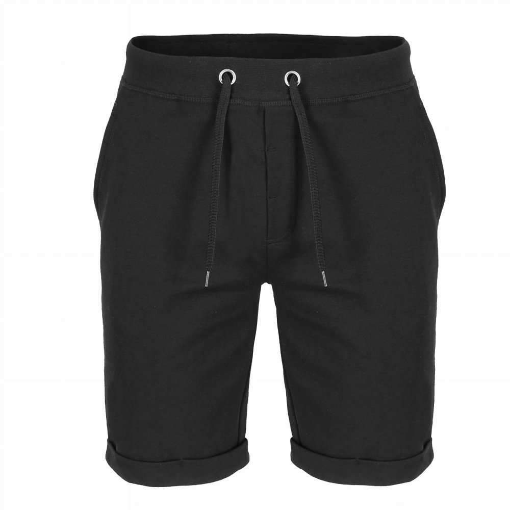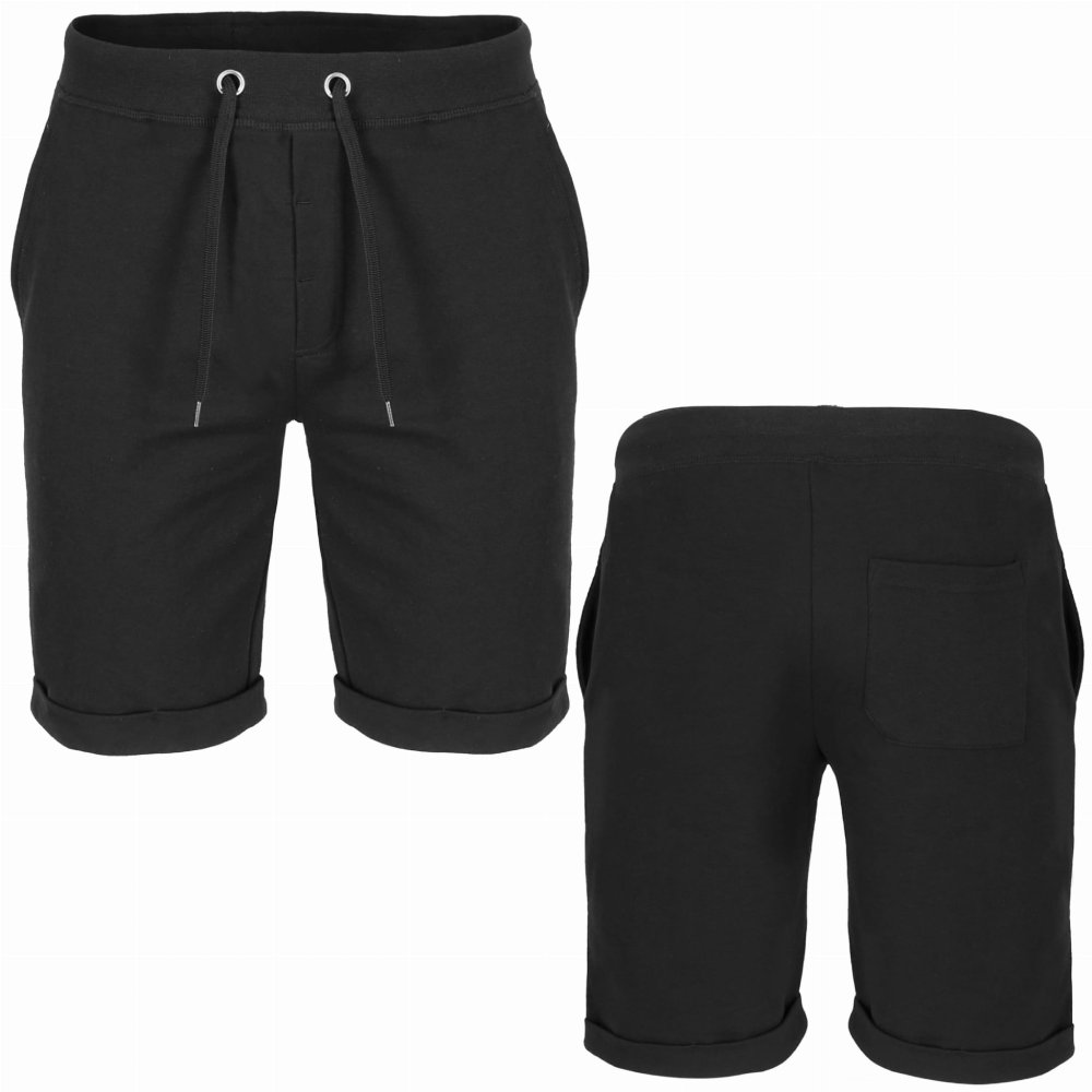 Męskie krótkie spodenki sportowe Morowo w kolorze czarnym. Wykonane z wysokiej jakości bawełny z dodatkiem poliestru, z podwiniętymi nogawkami. Idealne na lato, do sportu i codziennego noszenia.