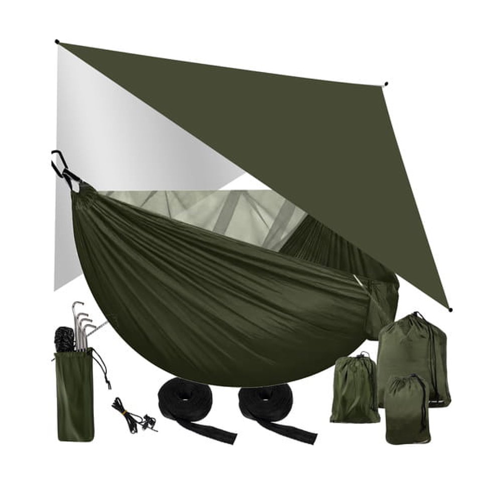 Hamak turystyczny Trizand 250 kg z moskitierą i trapem – dwuosobowy hamak bushcraftowy, szybki montaż, ochrona przed deszczem i owadami. Idealny na biwak i survival.