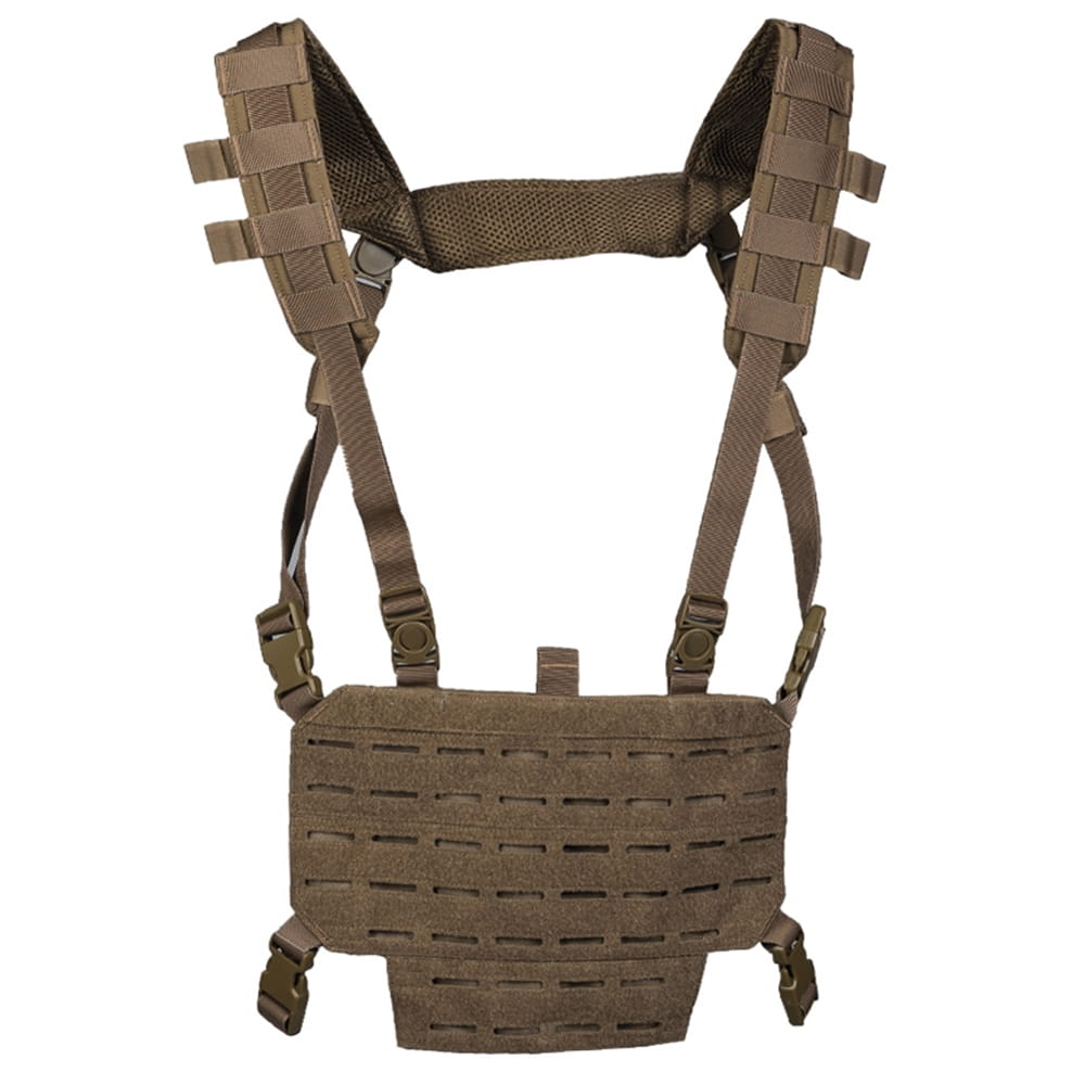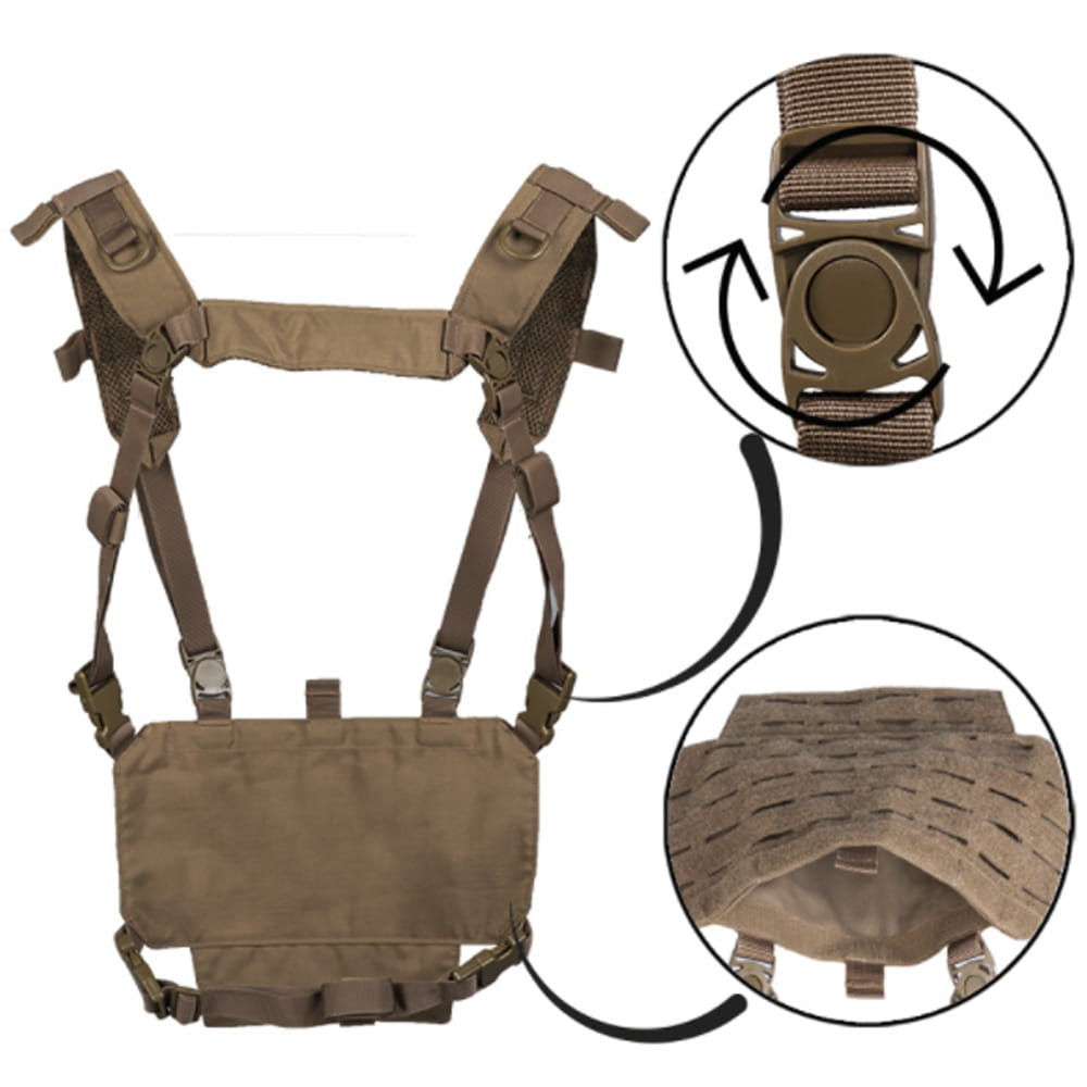 Kamizelka Taktyczna Chest RIG Mil-Tec to lekka i wygodna kamizelka w kolorze Dark Coyote, idealna do ASG i paintballu. Posiada panel rzepowy i otwory montażowe laser cut na akcesoria, a także wewnętrzną kieszeń na magazynki. Szelki oferują pełną regulację i możliwość demontażu.