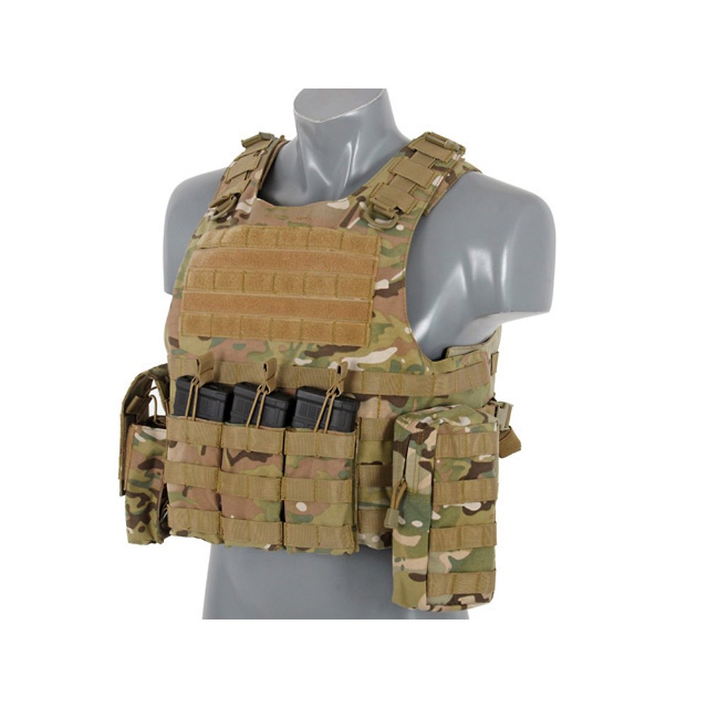 Kamizelkę wykonano z poliestru 1000D, który zapewnia wysoką odporność na przetarcia, rozdarcia i intensywne użytkowanie. Solidna konstrukcja gwarantuje stabilność przenoszonego oporządzenia nawet przy dużym obciążeniu.