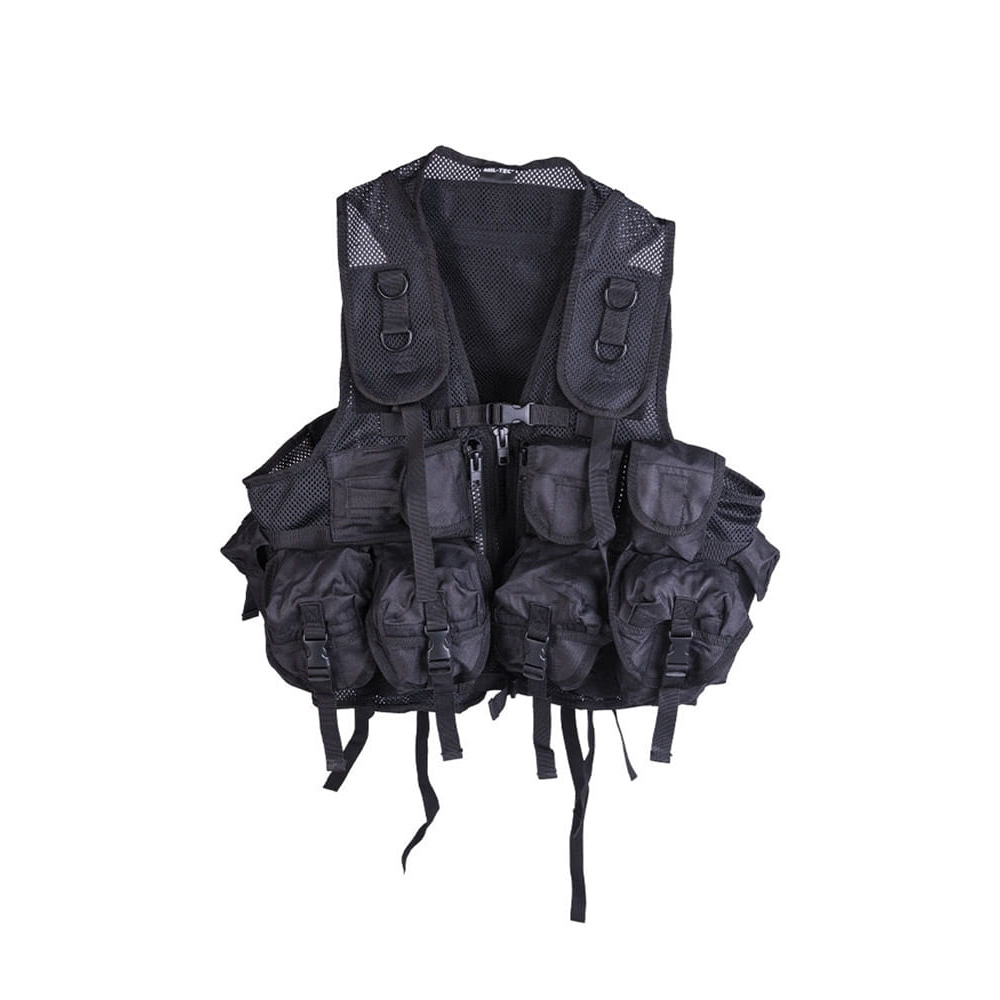 Kamizelka taktyczna firmy Mil-Tec posiada 2 kieszenie wewnętrzne z siatki zapinane na ekspresy z przeznaczeniem na mapy i dokumenty, 9 kieszeni zewnętrznych oraz dużą tylną komorę. Wykonana jest w 100% z poliestru z powłoką PU oraz podszyta siatką MESH dla zapewnienia lepszej oddychalności. Kamizelka jest bardzo komfortowa w użytkowaniu, nie krępuje ruchów. Rozmiar uniwersalny z możliwością regulacji za pomocą sznurków z boku oraz rzepów w okolicy ramion.
