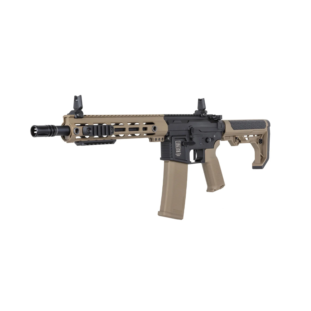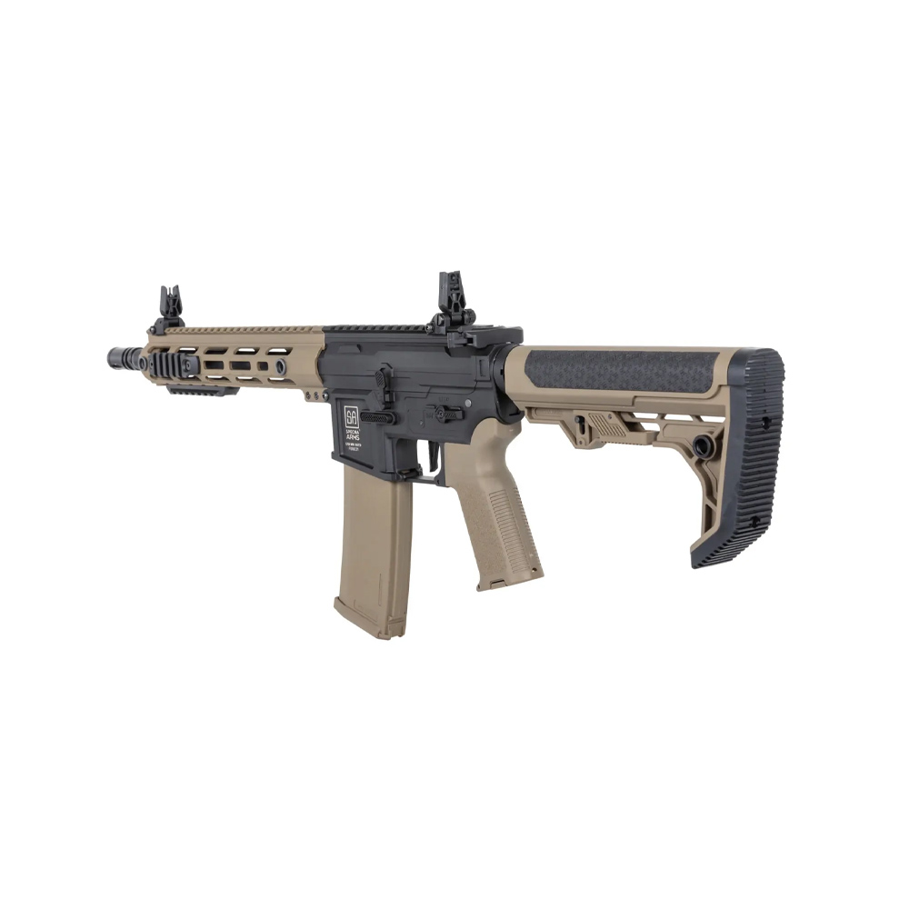 Korpus to autorski projekt Specna Arms łączący w sobie walory estetyczne oraz wysoką ergonomię. Każdy element został wykonany oraz spasowany z dbałością o szczegóły. Model posiada obustronne powiększone manipulatory (selektor oraz zwalniacz magazynka) oraz funkcjonalny bolt-catch.