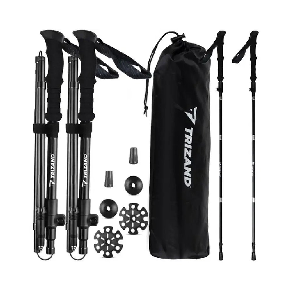 Kije trekkingowe Trizand – aluminiowe, regulowane 110–130 cm, z uchwytami EVA i 3 końcówkami. Lekkie, wytrzymałe, idealne do trekkingu i nordic walking.