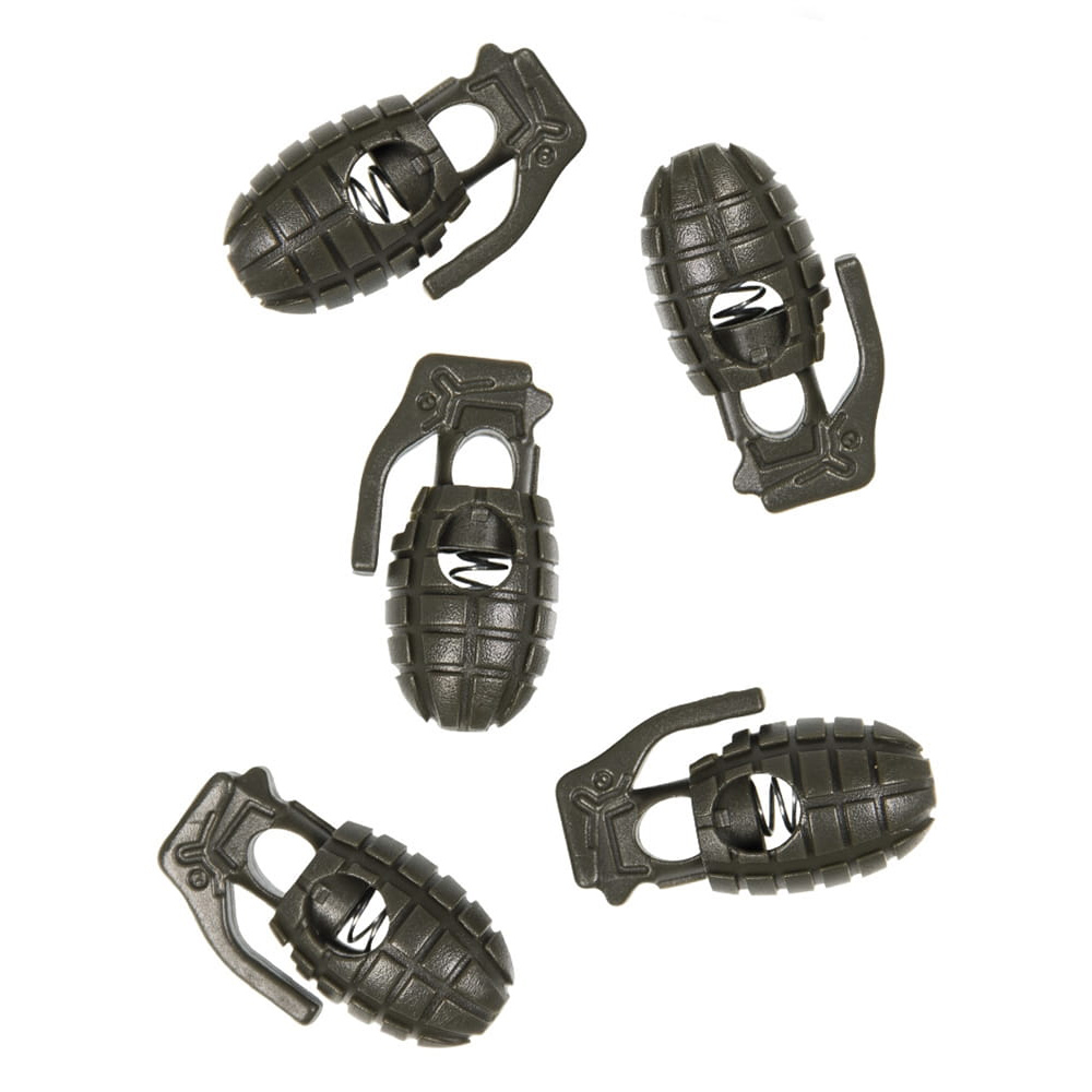 Koralik Do Paracordu Mil-Tec Granat Olive 10 szt to zestaw 10 stoperów w kształcie granatu, wykonanych z wytrzymałego polimeru. Są idealne do mocowania sznurków lub gumy do plecaków i innego ekwipunku. Są odporne na uszkodzenia i niskie temperatury.
