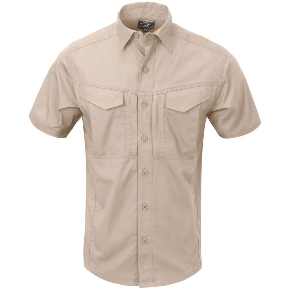 Koszula Helikon-Tex Defender Mk2 z krótkim rękawem to odświeżona wersja popularnego modelu stworzonego z myślą o funkcjonariuszach, operatorach, ochroniarzach oraz osobach aktywnych w terenie i mieście. Dzięki zastosowaniu nowego, lekkiego materiału CVC Ripstop koszula jest przewiewna, szybkoschnąca i bardziej komfortowa w upalne dni, a jej krój zapewnia swobodę ruchów i funkcjonalność w każdej sytuacji.