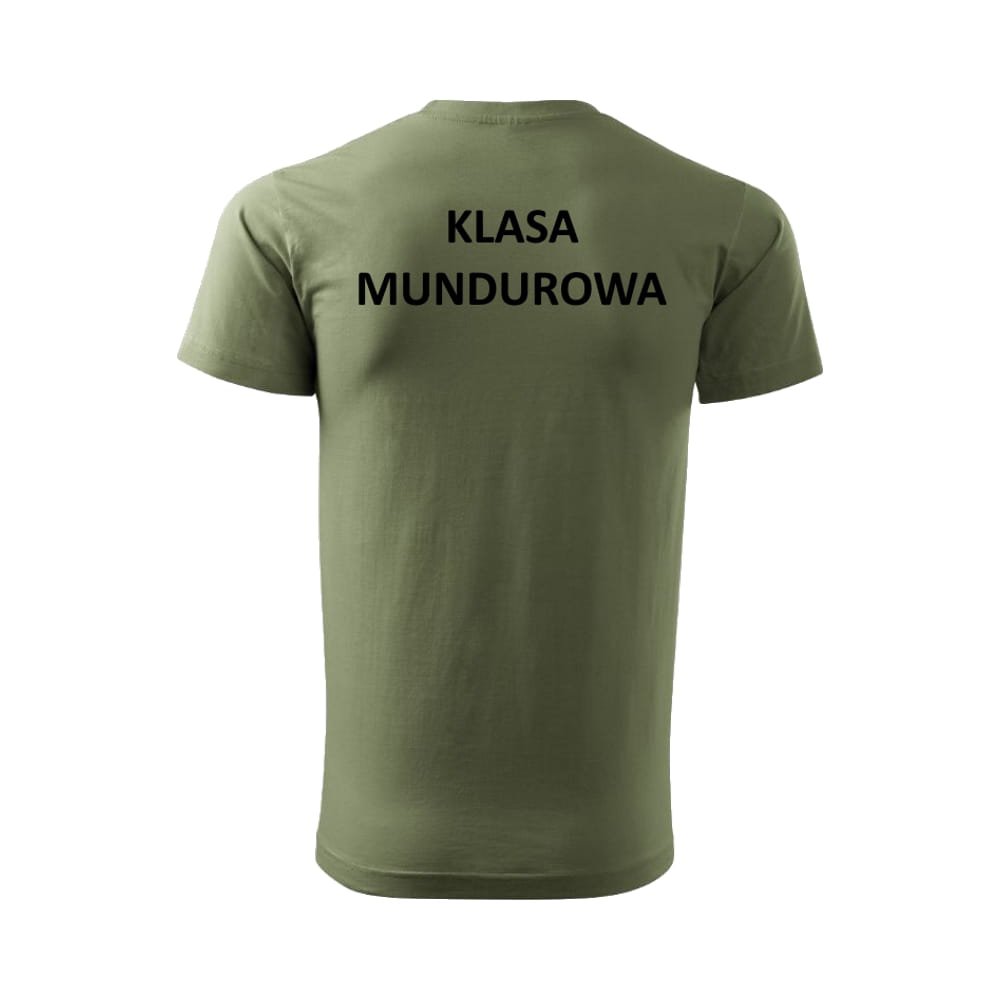 Koszulka T-shirt Klasa Mundurowa – bawełniana koszulka z nadrukiem, gramatura 190 g/m². Wysoka jakość, trwałość i wygoda do szkoły oraz odzieży polowej.