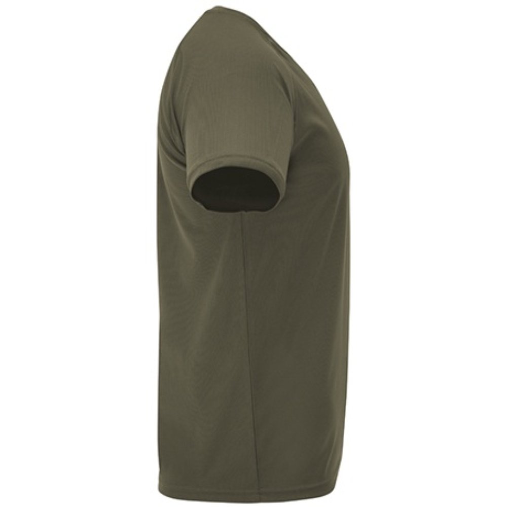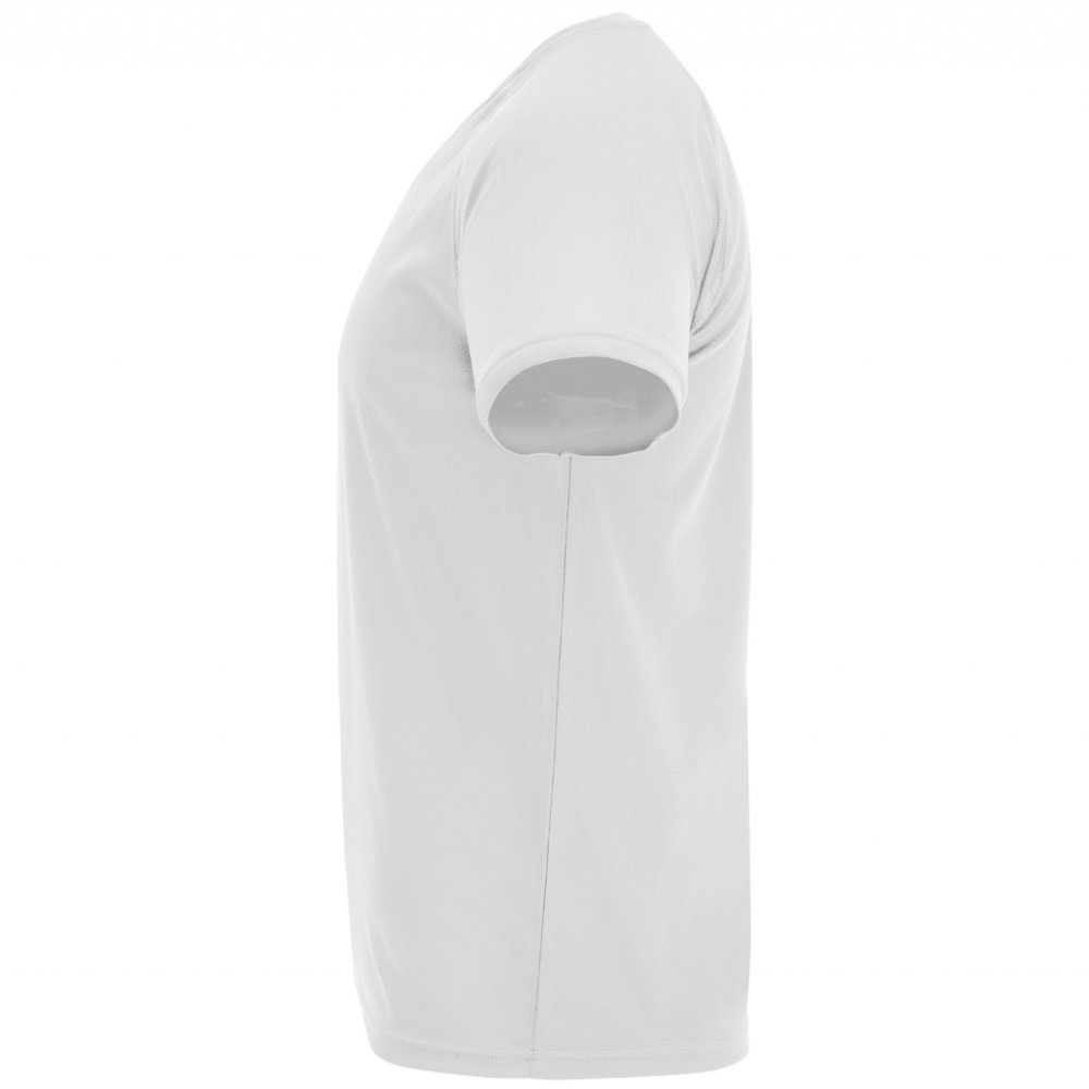 T-shirt został wykonany z dedykowanej tkaniny poliestrowej o gramaturze 135 g/m2. Materiał ten charakteryzuje się wysoką zdolnością do odprowadzania wilgoci, co pozwala na błyskawiczne transportowanie potu do zewnętrznych warstw dzianiny. Cienka i lekka struktura materiału sprawia, że koszulka jest niemal niewyczuwalna na ciele, co znacząco podnosi komfort podczas biegania, gry w piłkę czy jazdy na rowerze.