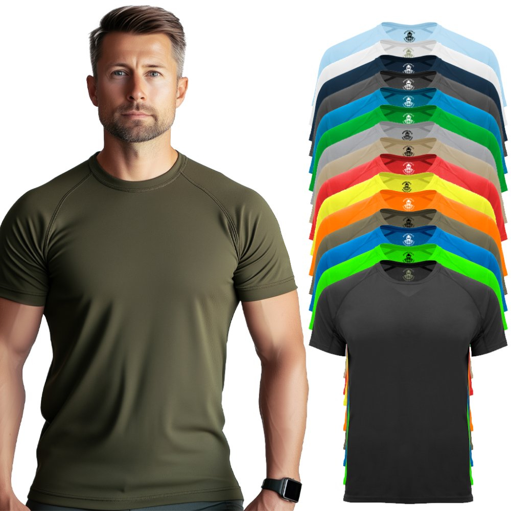 Męska koszulka termoaktywna Morowo. Wykonana z oddychającego poliestru 135 g/m2. Szybkoschnący t-shirt sportowy idealny na siłownię, bieganie, rower i trekking.