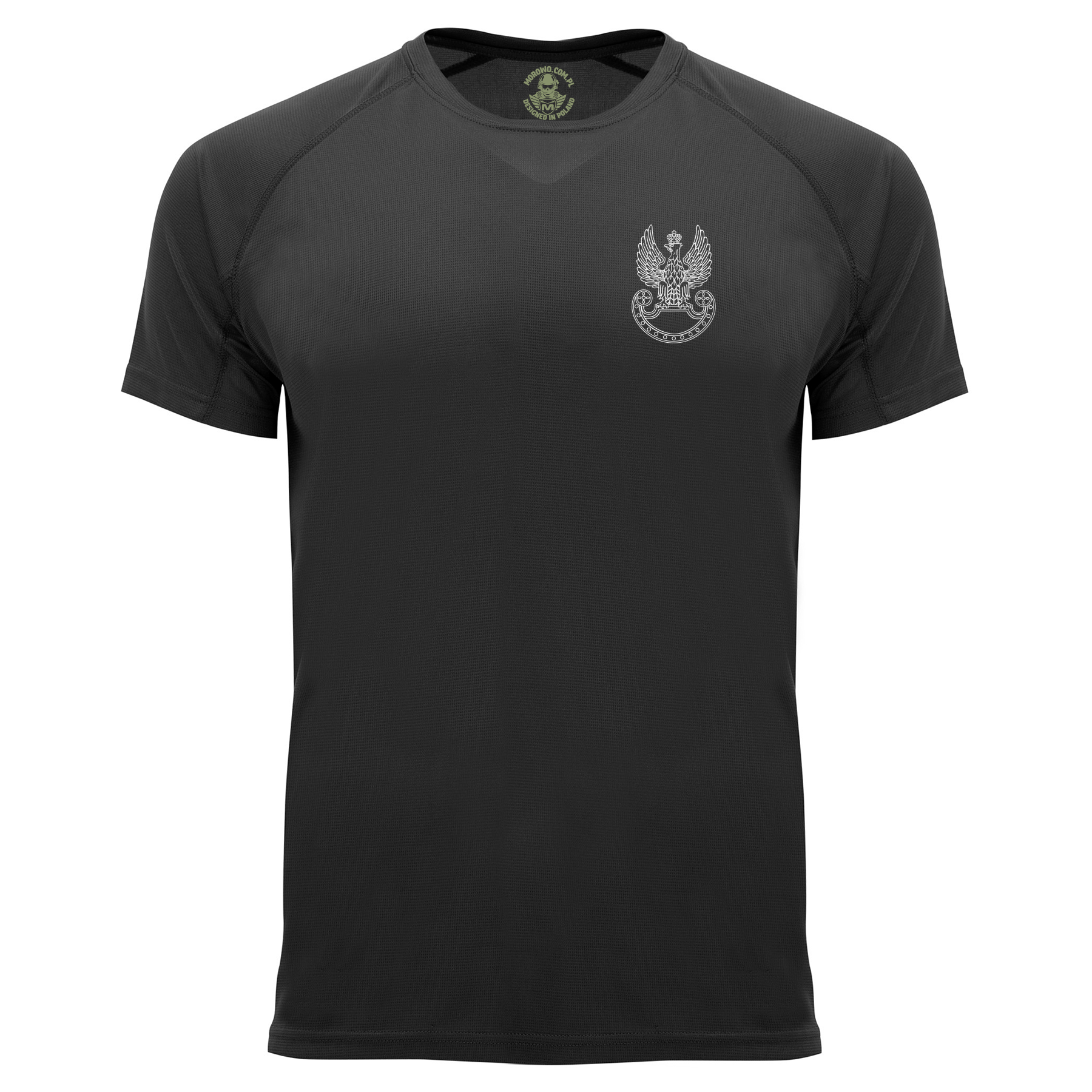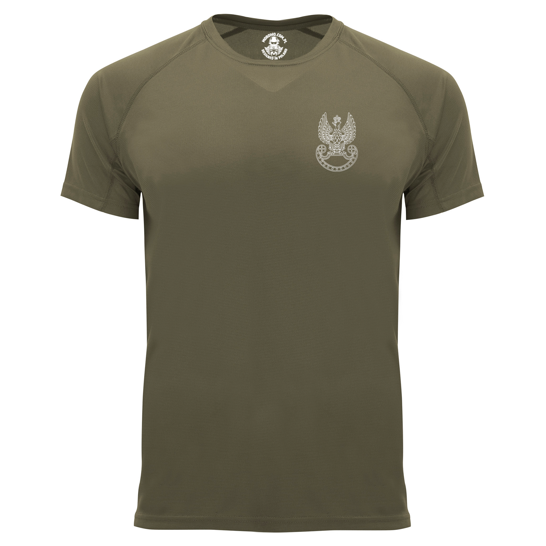 Model charakteryzuje się surowym, wojskowym stylem, który został przełamany nadrukiem konturu Polskiego Orła na piersi. Wykorzystanie trwałych technik nanoszenia wzoru sprawia, że grafika zachowuje estetyczny wygląd po wielu praniach. Koszulka stanowi wybór dla osób ceniących odzież patriotyczną oraz wyposażenie o charakterze taktycznym.