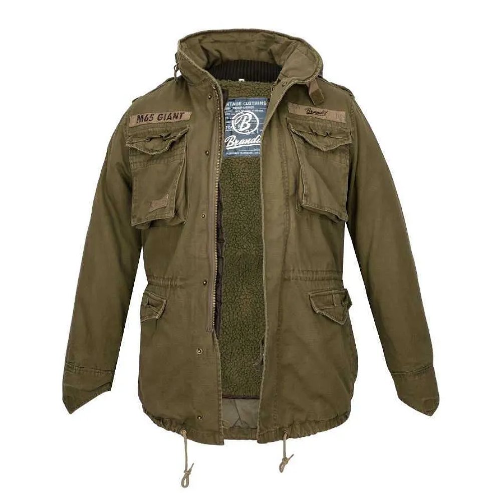 Kurtka Brandit M65 Giant Olive – klasyczna kurtka wojskowa inspirowana modelem US Army M65. Bawełna impregnowana, wypinana podpinka, efekt vintage. Idealna do miasta i outdooru.