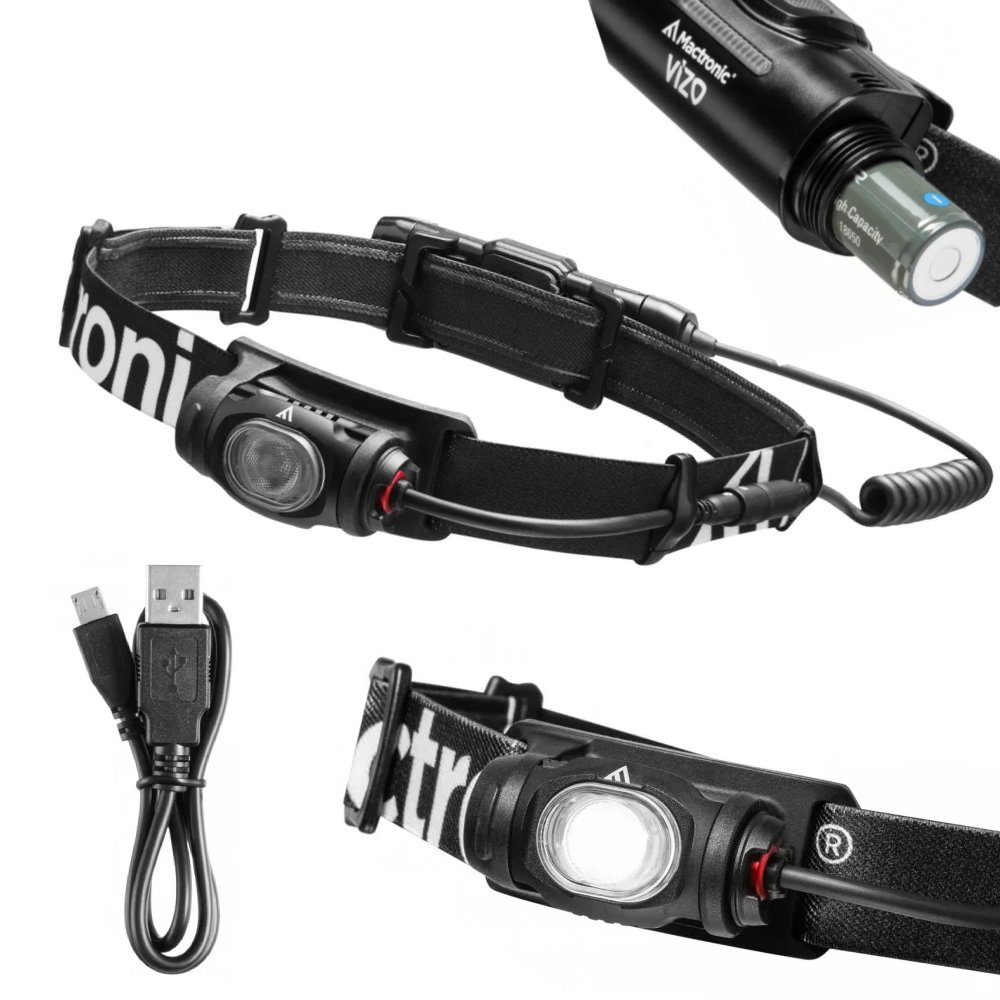 Mactronic Vizo RC – profesjonalna latarka czołowa 735 lm z akumulatorem Li-Ion, zasięgiem do 100 m, wodoodpornością IP64 i czerwonym światłem. Idealna na wyprawy outdoorowe.
