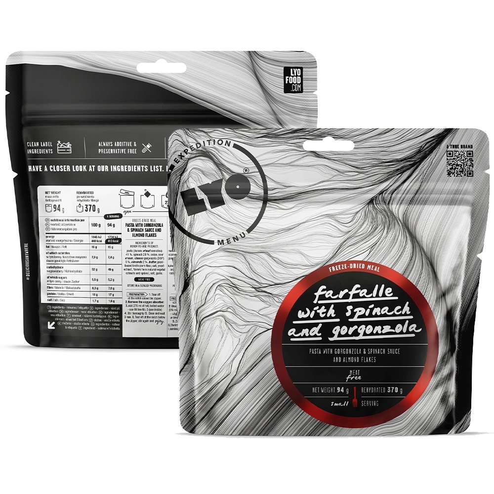LYOFOOD Farfalle ze Szpinakiem i Gorgonzolą 370 g Liofilizowany Makaron Włoski Outdoor