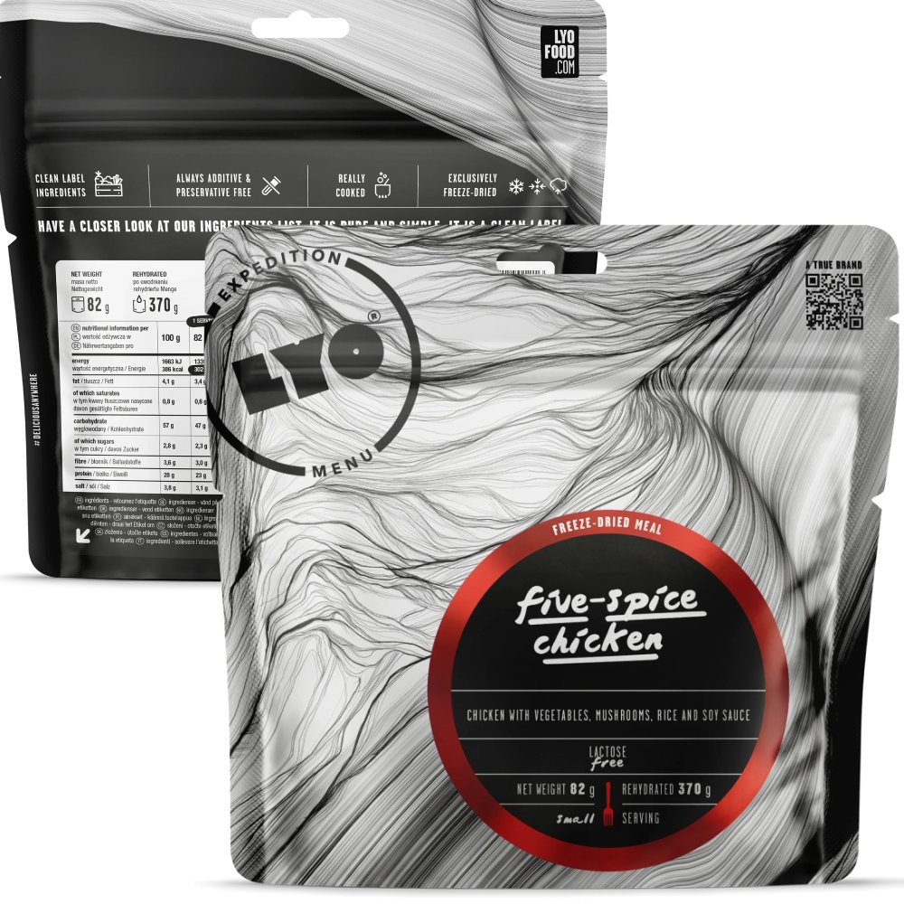 LYOFOOD Kurczak w pięciu smakach (500 g) to pełnowartościowy posiłek outdoorowy, który łączy wyrazisty aromat kuchni azjatyckiej z wysoką wartością energetyczną. Połączenie filetu z kurczaka, ryżu oraz bogatej mieszanki warzyw zapewnia sytość i energię nawet podczas intensywnego wysiłku w terenie.