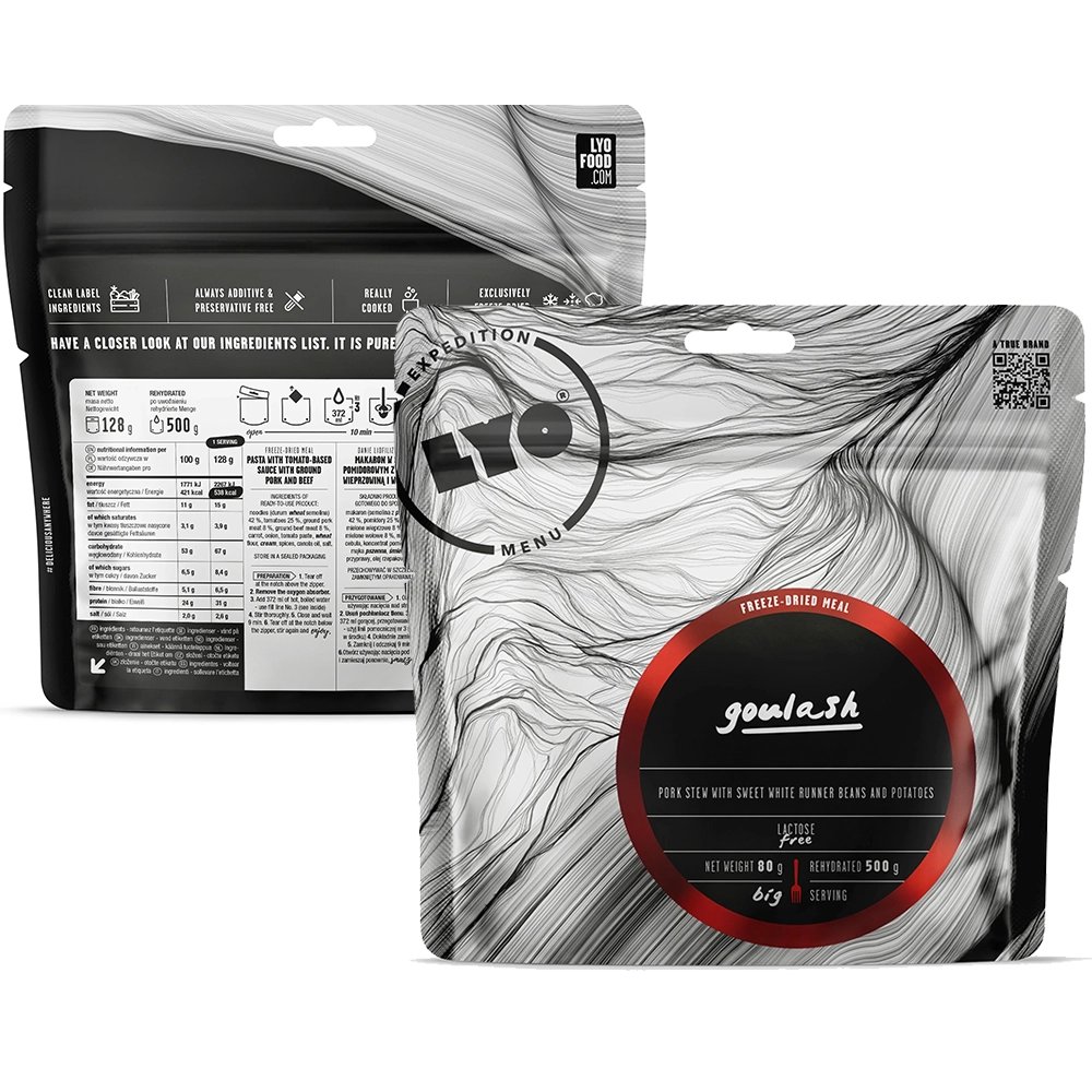 LYOFOOD zupa gulaszowa 500 gliofilizat premium, wieprzowina, papryka i fasola jaś, 100% naturalnych składników, idealna na trekking i outdoor.