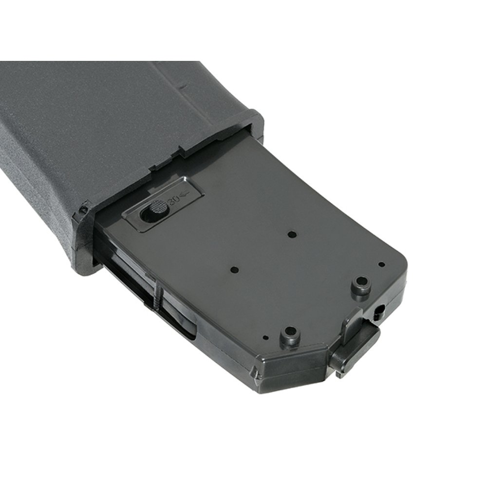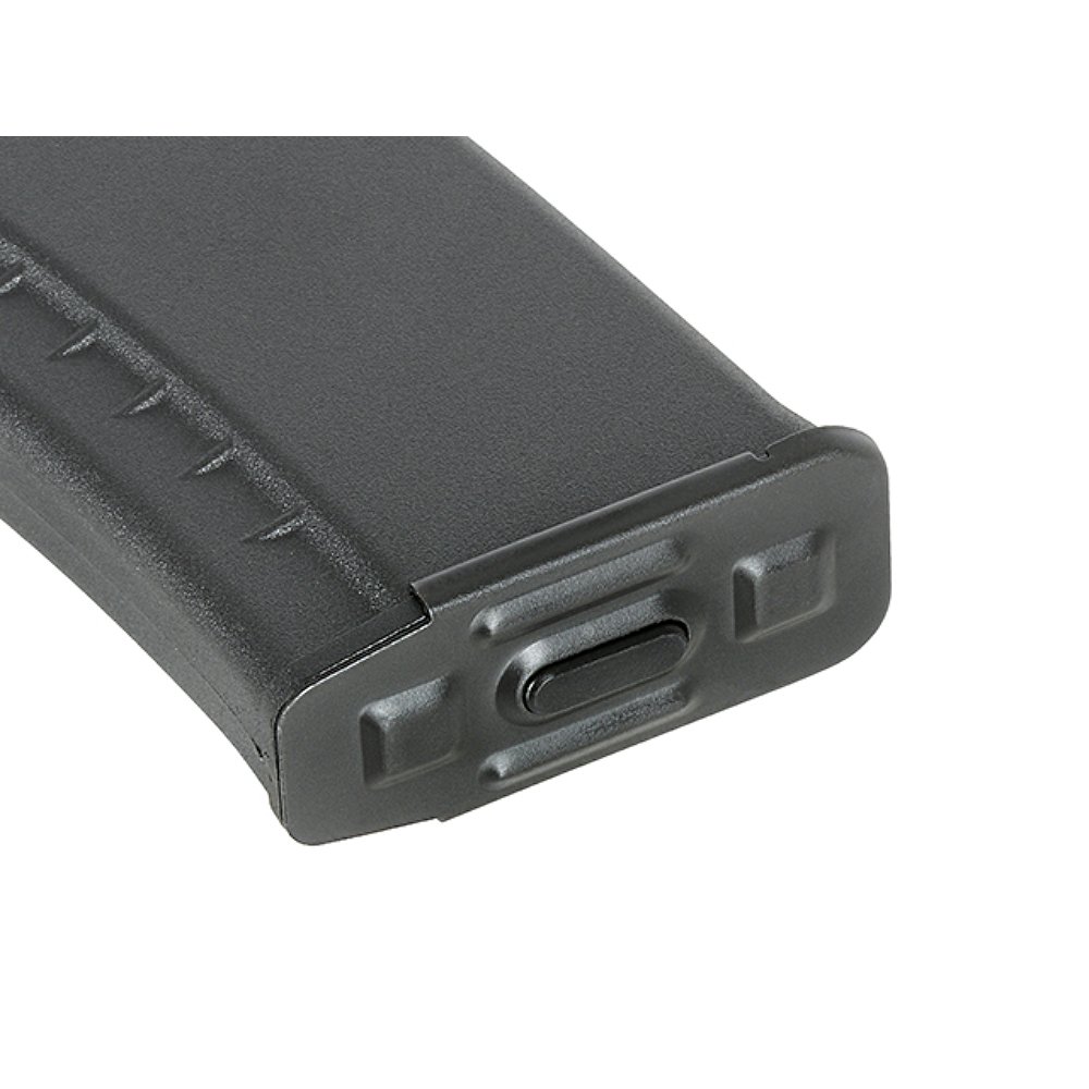 Wewnętrzny przycisk zmiany trybu umożliwia szybkie przełączenie pomiędzy pojemnością realistyczną a średnią, bez konieczności wymiany magazynka. To idealne rozwiązanie do milsimów, gier taktycznych oraz dynamicznych rozgrywek.