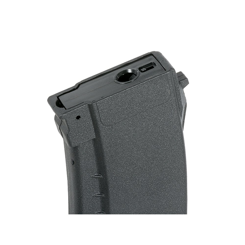 Specjalnie zaprojektowany donośnik gwarantuje, że po ostatnim strzale nie pozostaje żadna kulka BB w magazynku. To zwiększa niezawodność repliki i eliminuje straty amunicji.