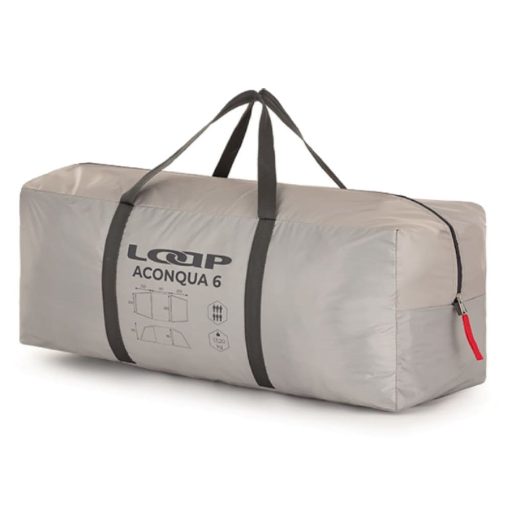 Namiot Loap Aconqua 6 Szary – rodzinny namiot 6-osobowy z 2 sypialniami i holem. Wodoodporny, trwały, z klejonymi szwami. Idealny na kemping i biwak.