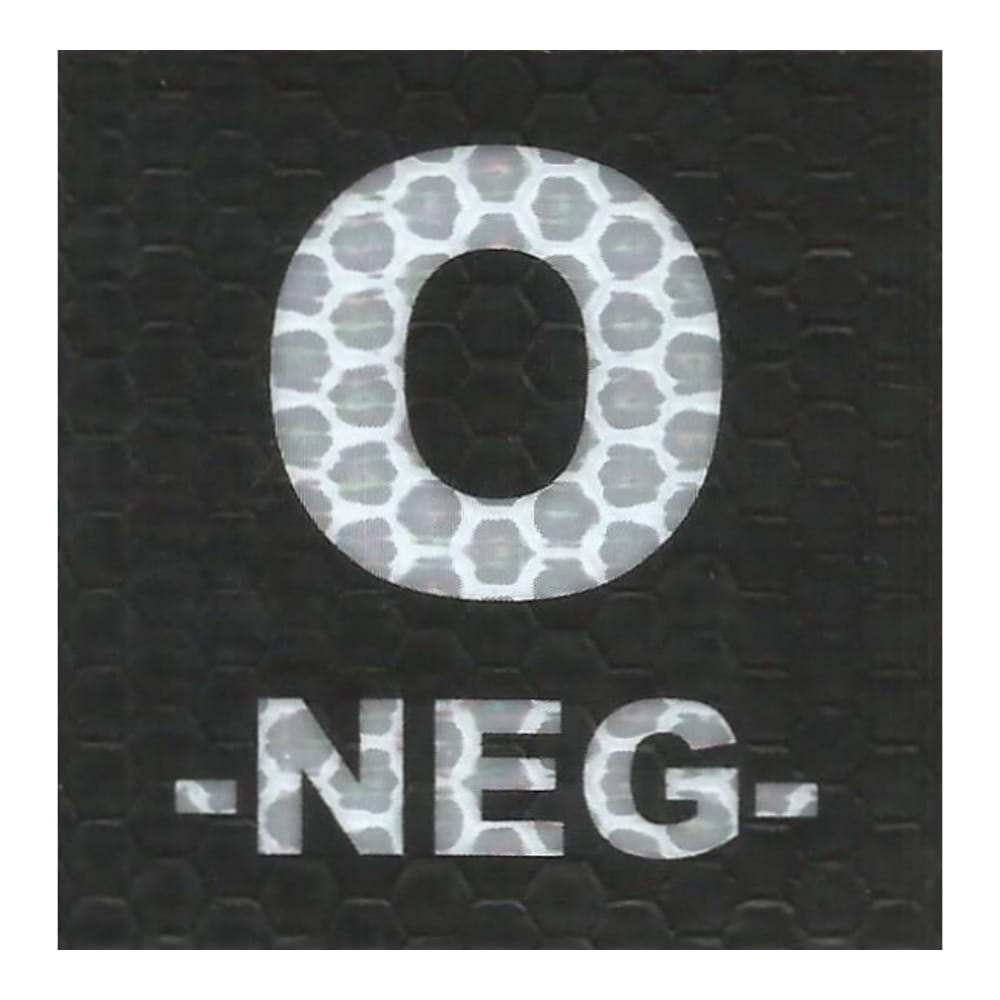 Zaawansowana plakietka identyfikacyjna z oznaczeniem grupy krwi 0 Rh- (0 NEG), wykonana w technologii IR/IFF (Identification Friend or Foe). Stanowi ona niezbędny element wyposażenia taktycznego i medycznego, który pozwala na natychmiastowe odczytanie kluczowych danych ratowniczych niezależnie od panujących warunków oświetleniowych.