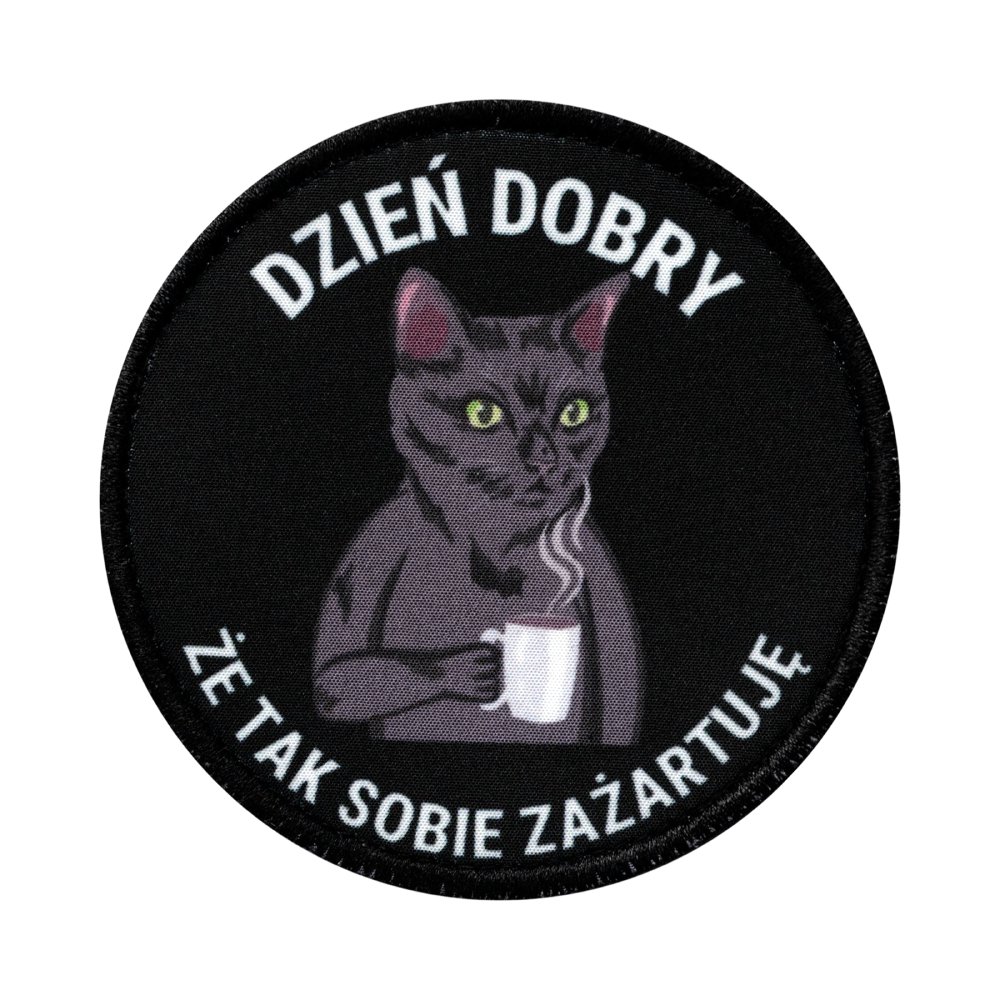 Oryginalna naszywka Morale Patch „Kot Dzień Dobry” o średnicy 80 mm. Wykonana z wysokiej jakości tkaniny, mocowana na rzep Velcro. Idealna do personalizacji odzieży i plecaków.