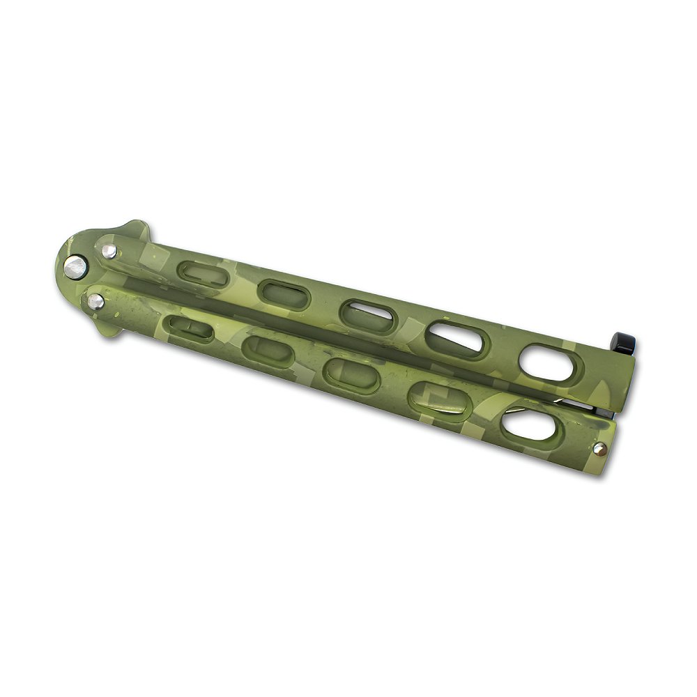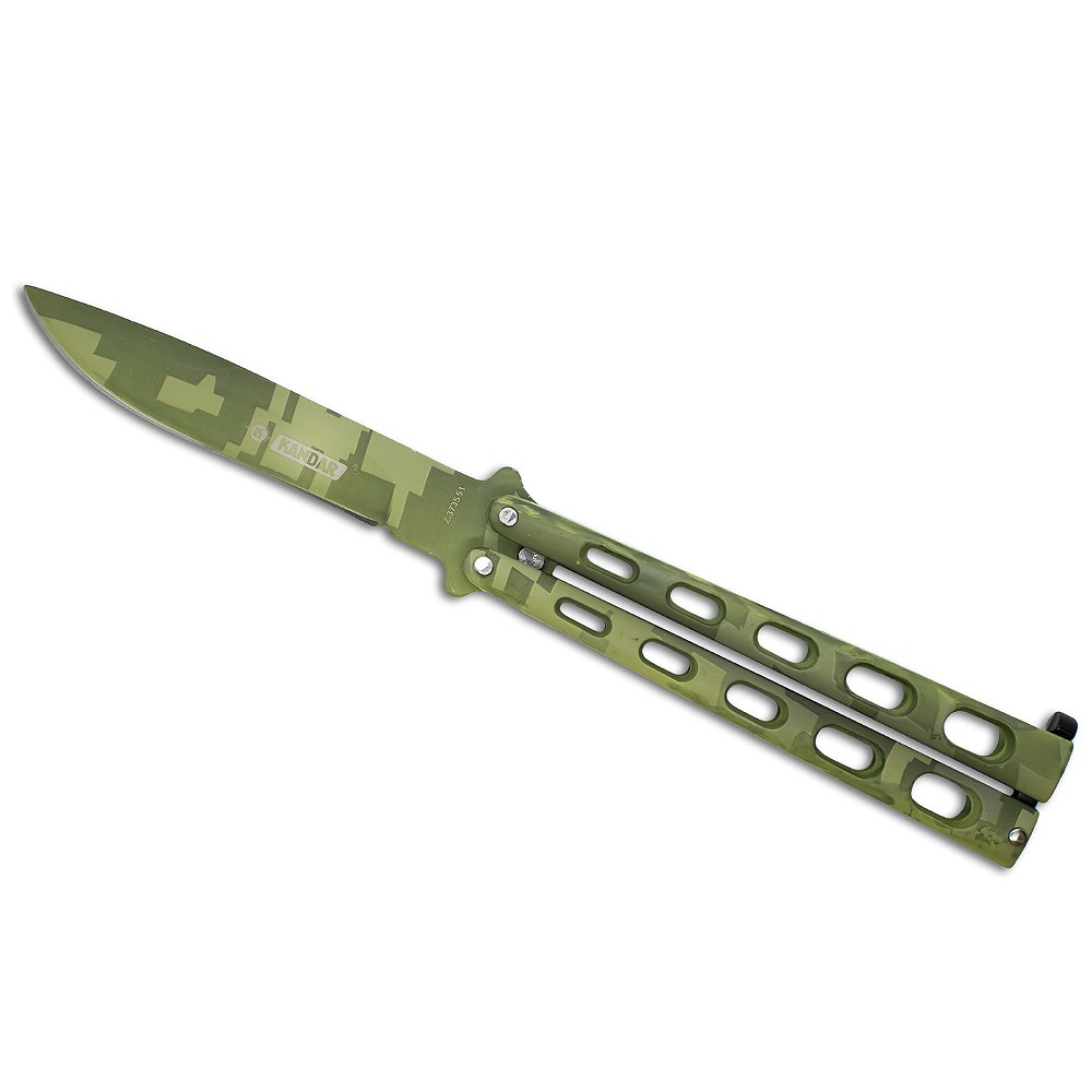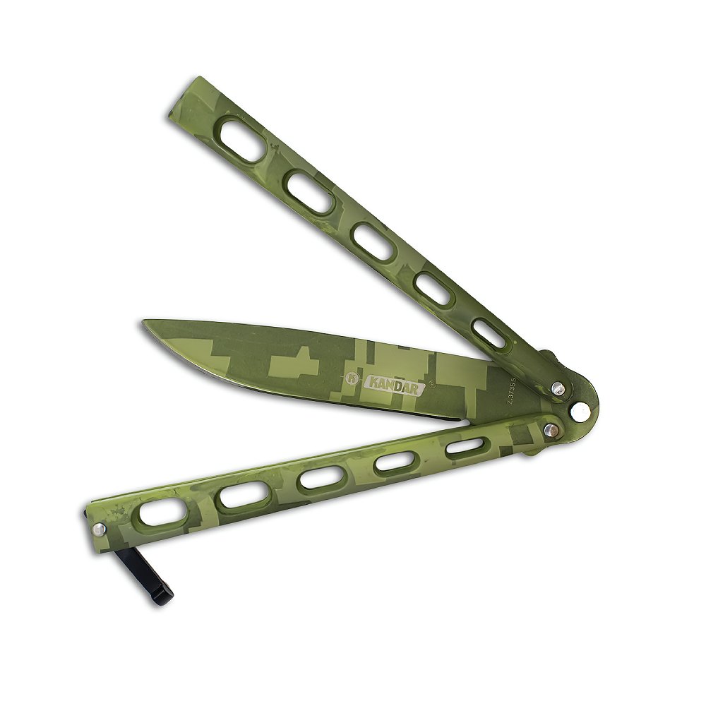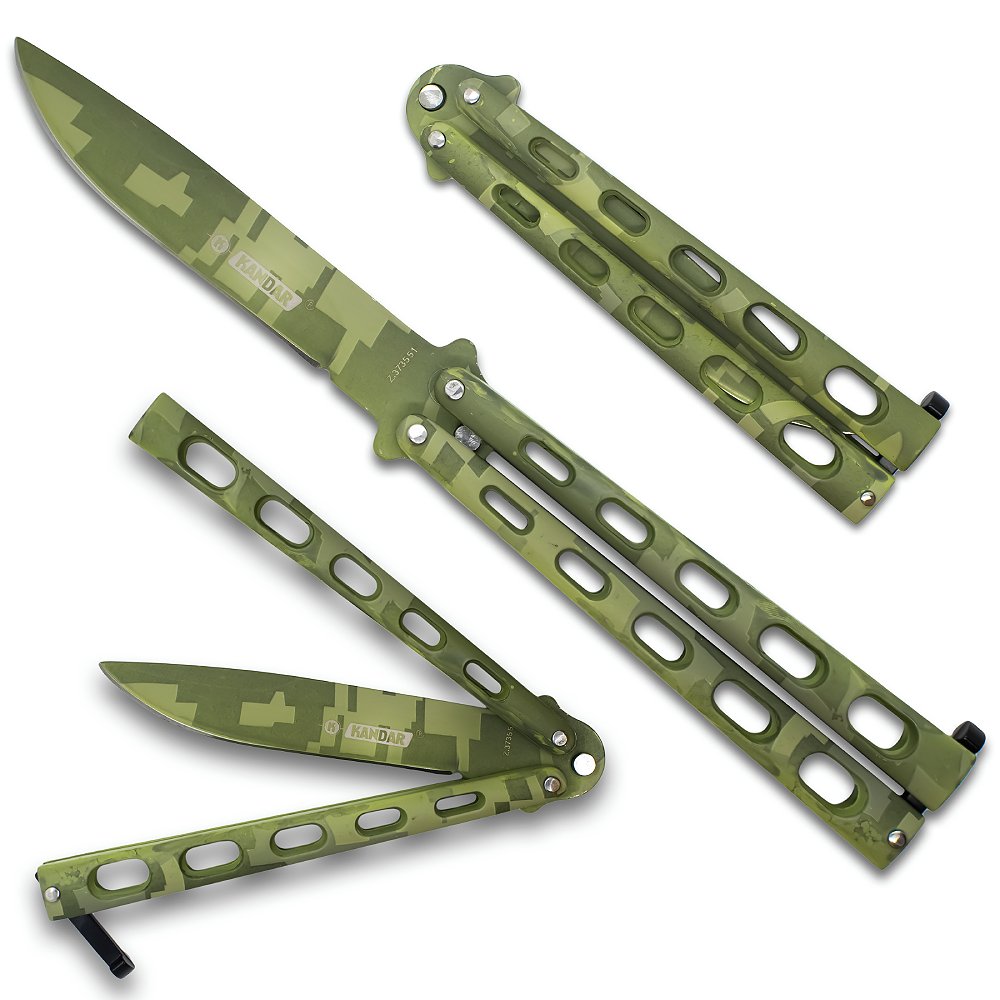 Nóż motylkowy Kandar 22 cm – składany balisong ze stali nierdzewnej. Gamingowy design, blokada bezpieczeństwa i idealne wyważenie do trików oraz użytkowania codziennego.
