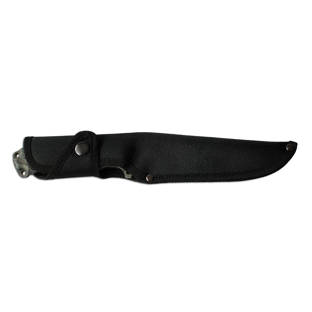 Nóż Kandar N202 posiada pełną konstrukcję Full Tang, co przekłada się na maksymalną wytrzymałość. W zestawie znajduje się pokrowiec parciany z mocowaniem do pasa, który ułatwia przenoszenie noża w terenie. Dodatkowe otwory w szkielecie rękojeści pozwalają na dowolne przytroczenie noża.