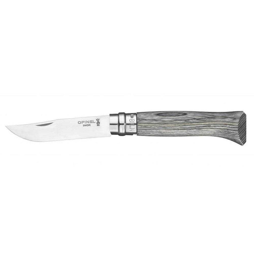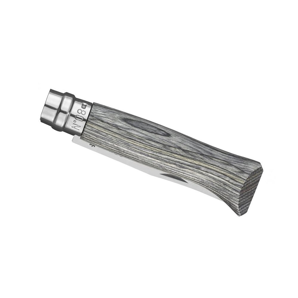 Nóż Opinel Inox No. 08 Laminated Grey – składany nóż ze stali Sandvik 12C27 i brzozową rękojeścią