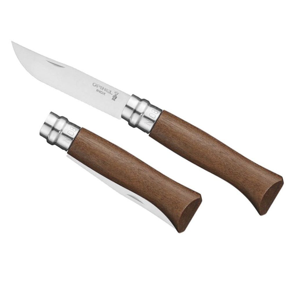 Opinel Luxury No. 08 – elegancki nóż składany ze stali Sandvik 12C27 i rękojeścią z drewna orzechowego. Blokada Virobloc, ostrze 85 mm, francuska jakość.