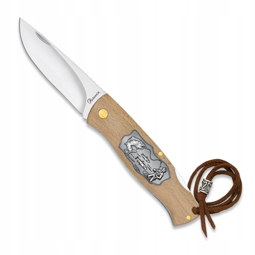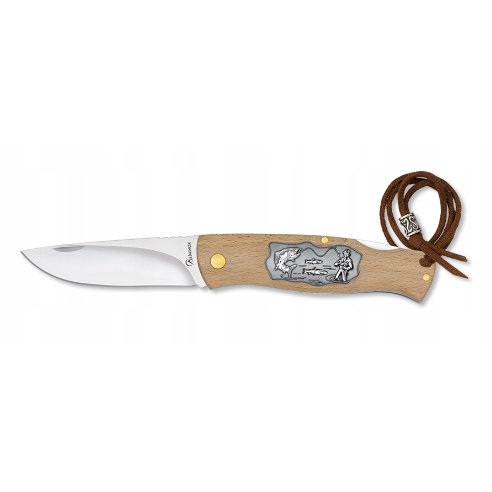 Nóż składany Albainox o numerze katalogowym 25131 to unikalne narzędzie zaprojektowane z myślą o miłośnikach wędkarstwa, outdooru oraz tradycyjnego rzemiosła. Model ten łączy w sobie klasyczną konstrukcję noża myśliwskiego z nowoczesnymi detalami, takimi jak wypukły odlew 3D przedstawiający wędkarza. Dzięki kompaktowym wymiarom i niskiej masie (zaledwie 109 g), stanowi doskonałe uzupełnienie ekwipunku EDC (Everyday Carry) dla każdego pasjonata natury.