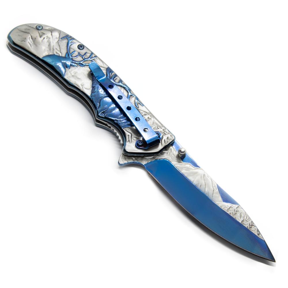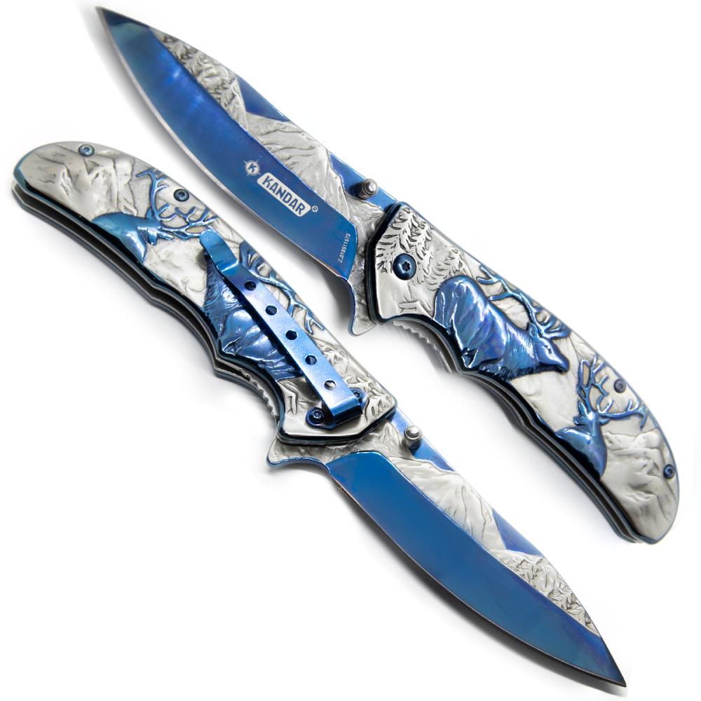 Nóż składany Kandar N435 to propozycja dla osób, które cenią funkcjonalność połączoną z wyjątkowym designem. Model zdobi trójwymiarowy motyw jelenia umieszczony na rękojeści, co nadaje mu unikalny charakter. Dzięki kompaktowym wymiarom nóż idealnie sprawdzi się podczas wypraw turystycznych, biwaków czy codziennego użytkowania EDC.