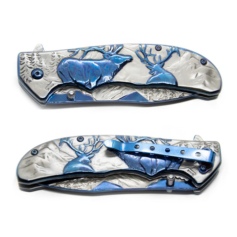 materiał rękojeści: metal z trójwymiarowym wzorem jelenia