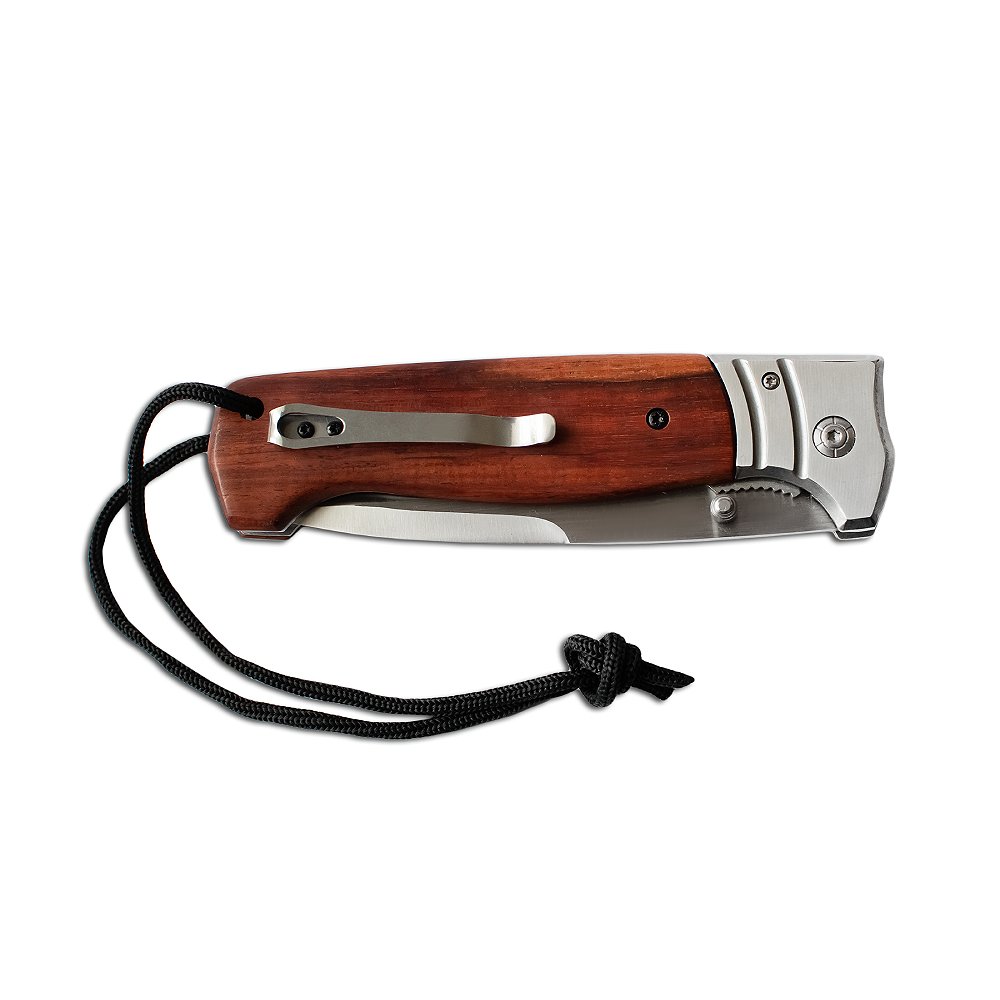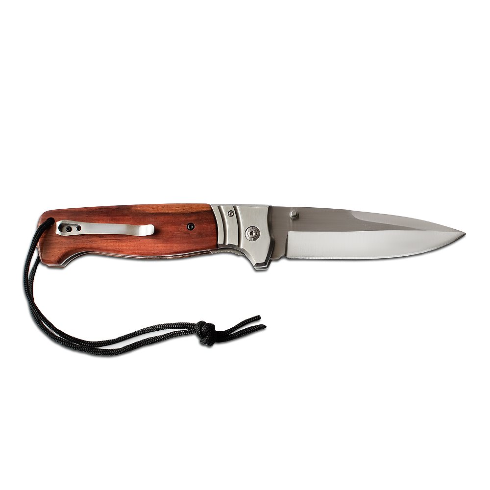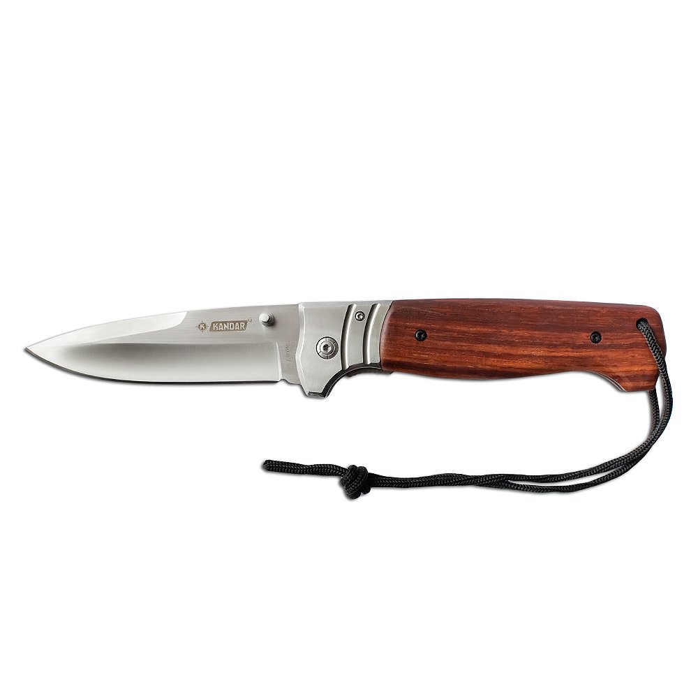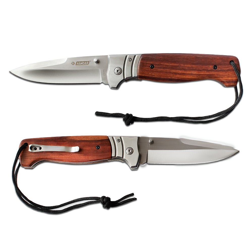 Nóż survivalowy Kandar N321 – składany nóż ze s tali nierdzewnej Z.373551, ostrze 12 cm, blokada Liner-Lock, drewniana rękojeść, klips do pasa. Idealny na biwak i outdoor.