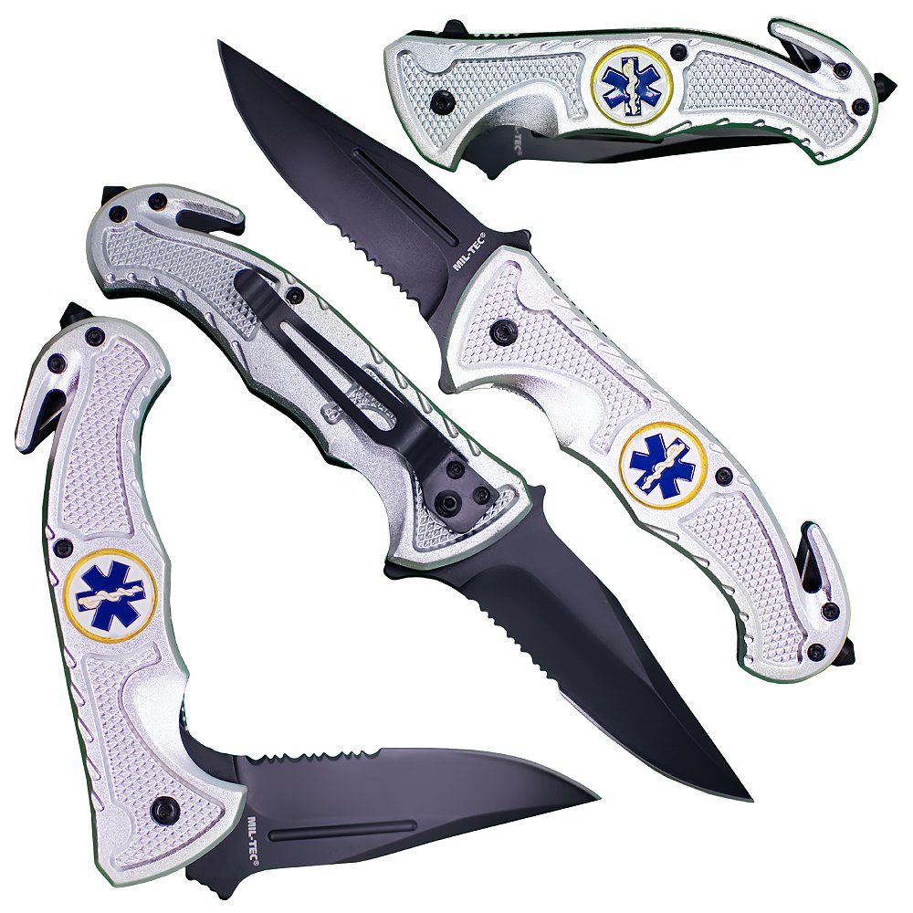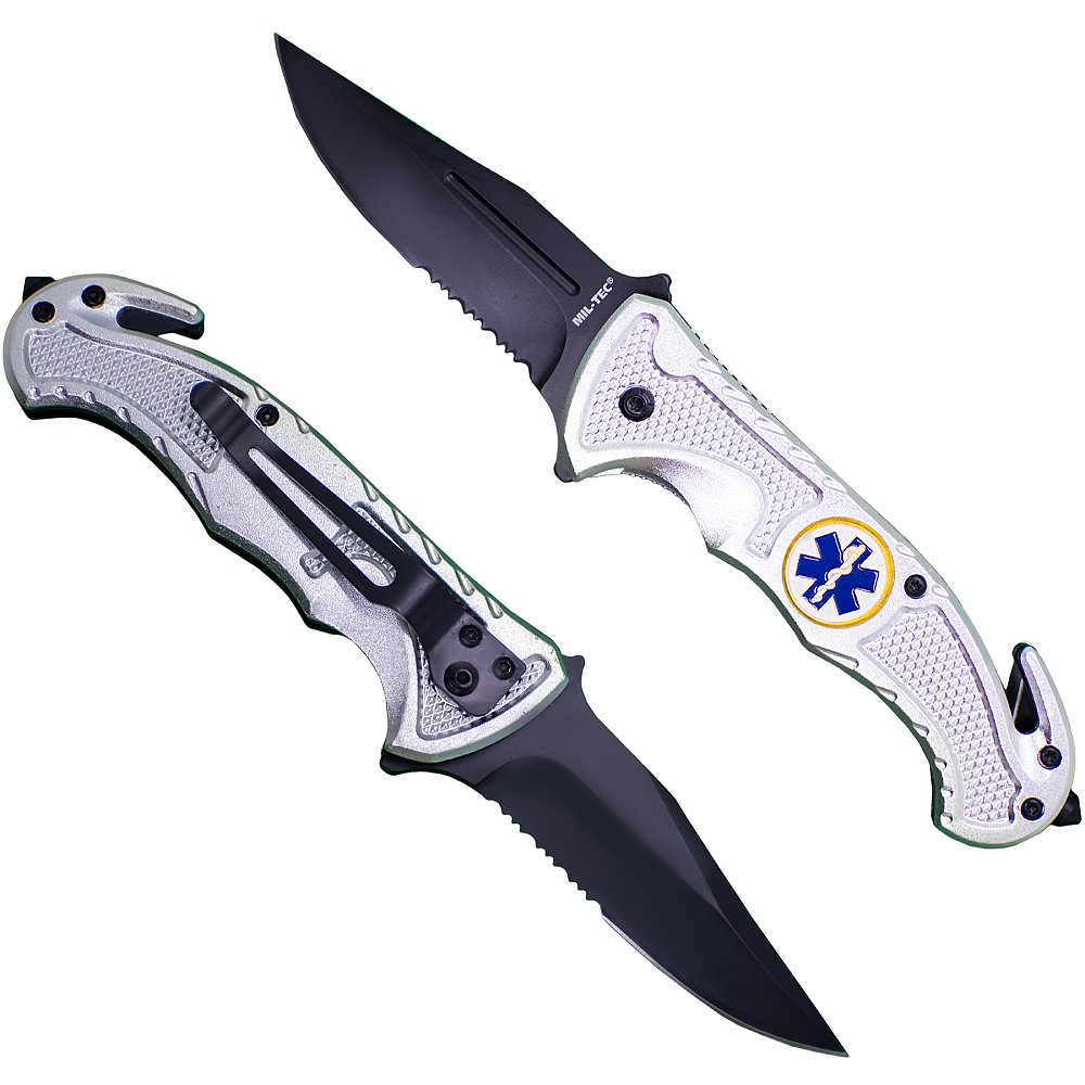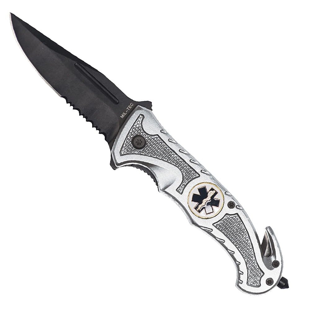 Nóż Składany Ratowniczy z Piłką Mil-Tec Srebrny