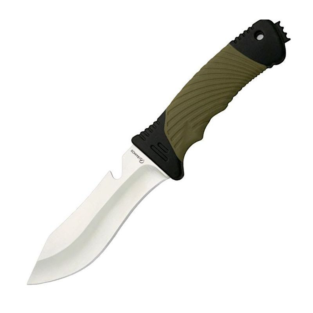 Solidny nóż taktyczno-campingowy Albainox 32340. Ostrze ze stali nierdzewnej 3Cr13MoV, ergonomiczna gumowana rękojeść i sztywna pochwa. Idealny do outdooru i survivalu.