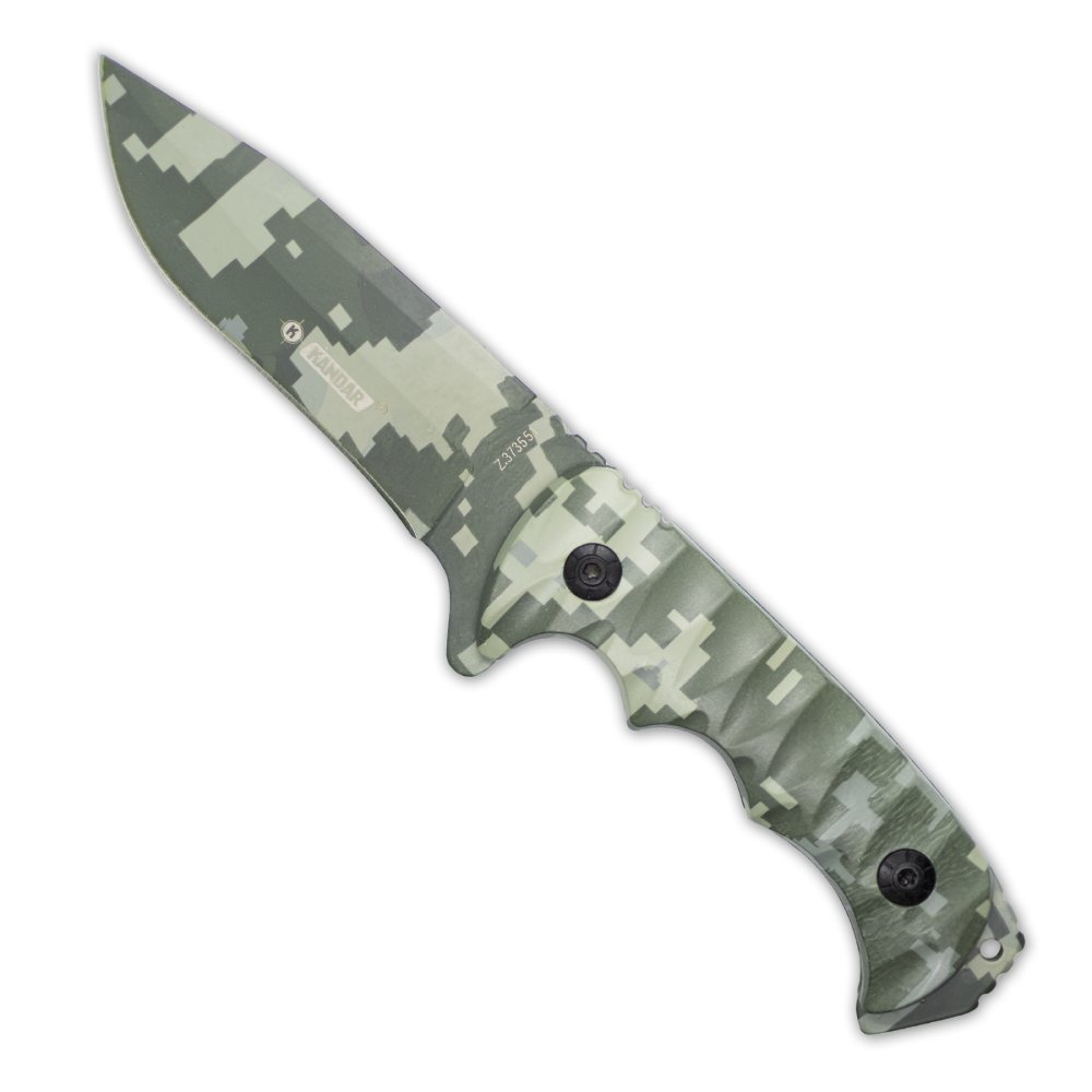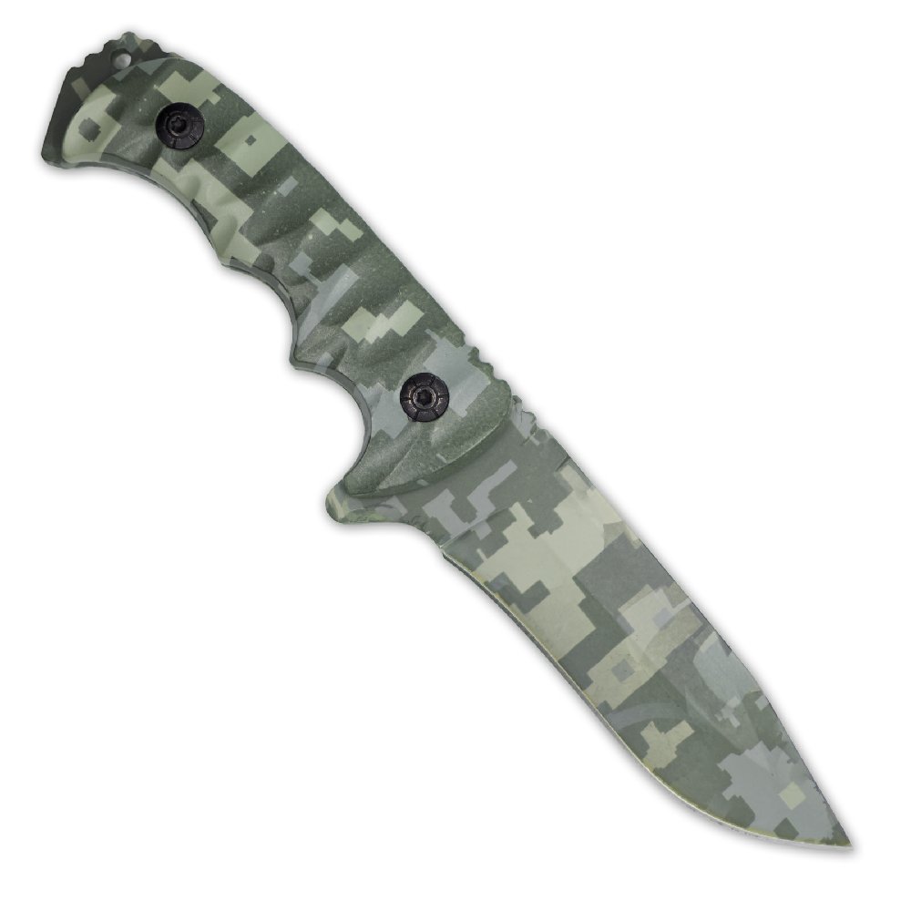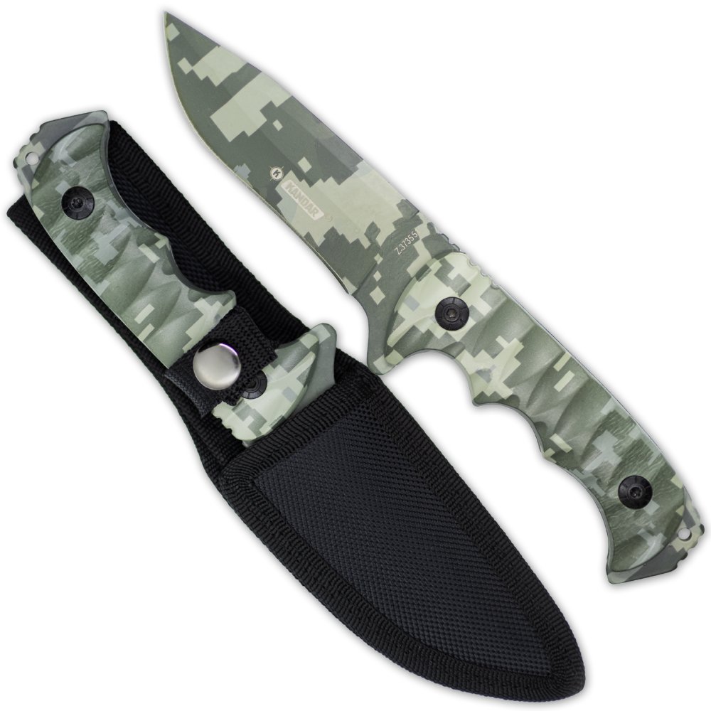 Nóż wojskowy taktyczny Kandar N383 Full Tang UCP – solidny nóż survivalowy ze stali 440, w kamuflażu. Antypoślizgowa rękojeść, pokrowiec Condura, idealny na outdoor i bushcraft.