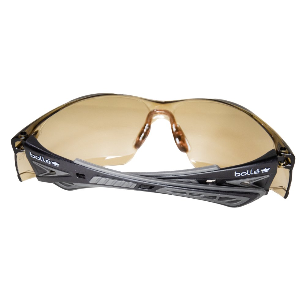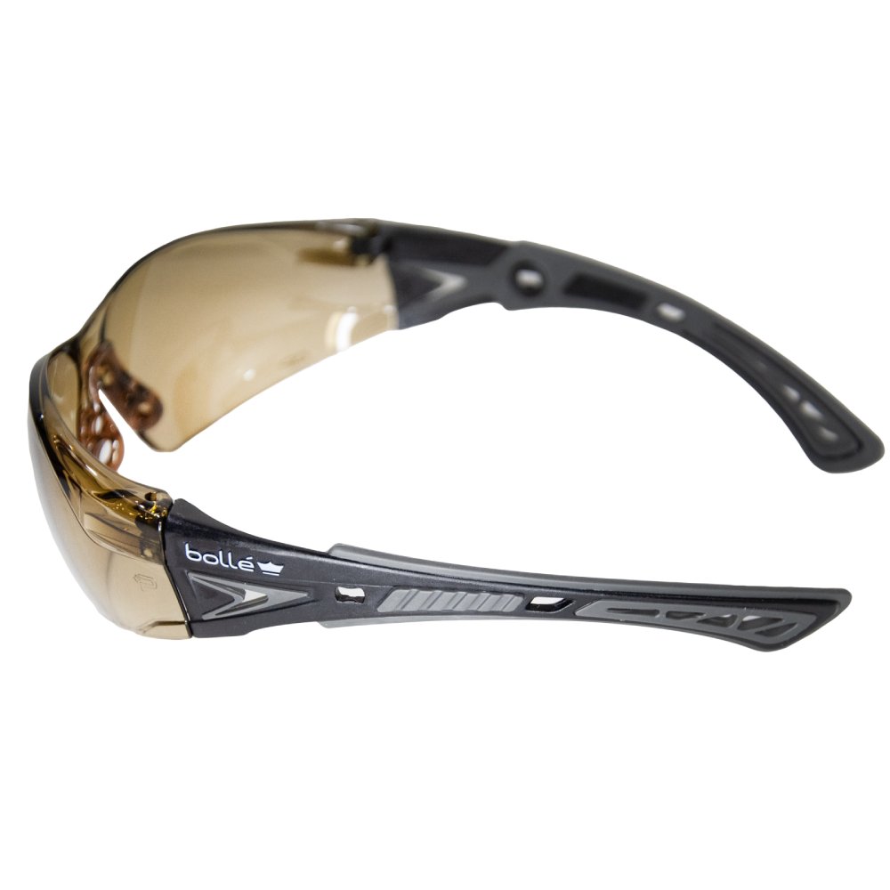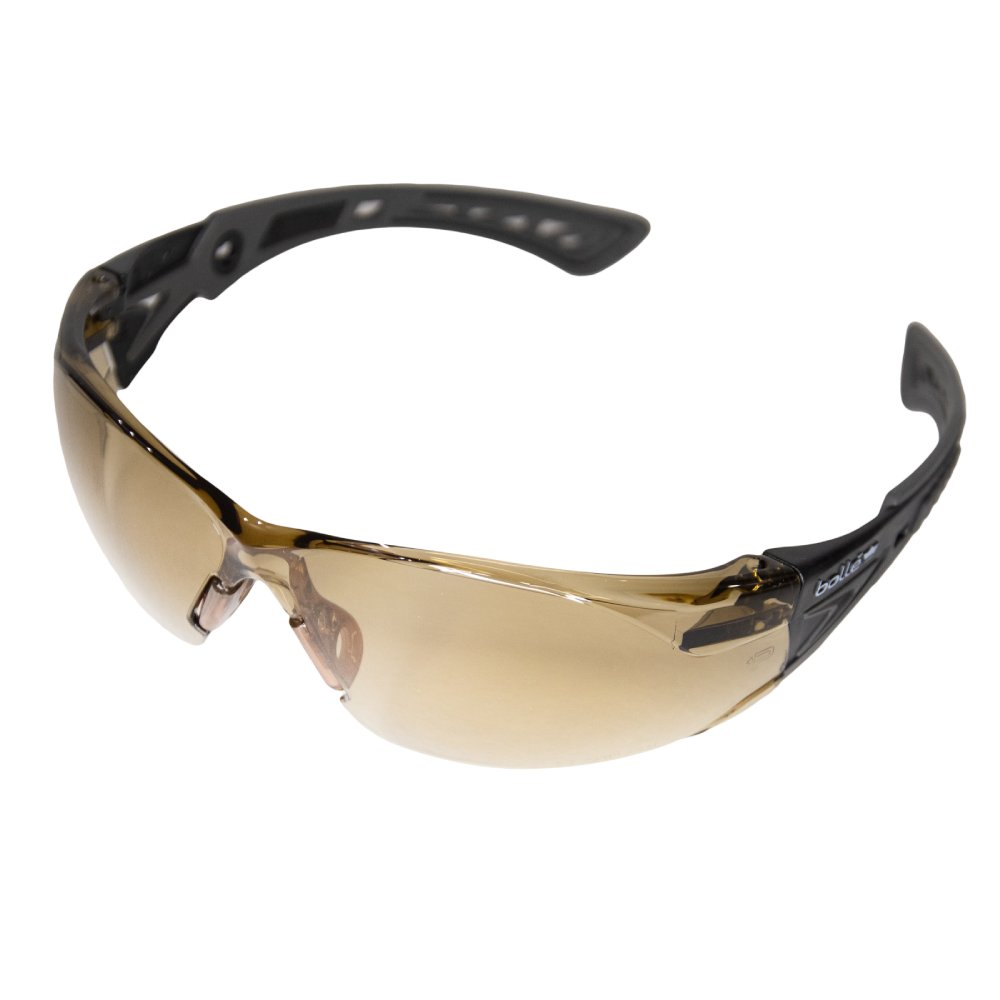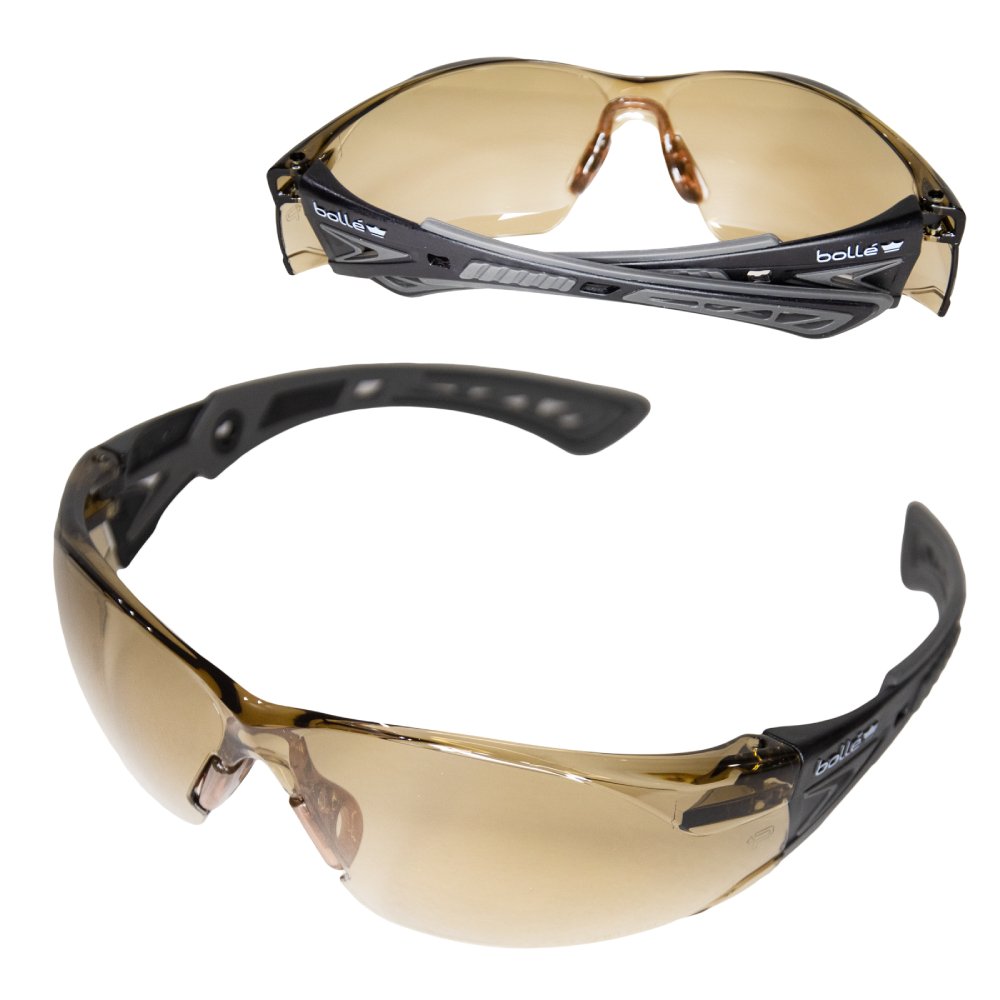 Bolle Rush+ Smoke – lekkie okulary ochronne z powłoką PLATINUM (Anti-scratch, Anti-fog), certyfikatami EN166/EN170 i balistyczną ochroną F/T. Idealne do strzelectwa i pracy.