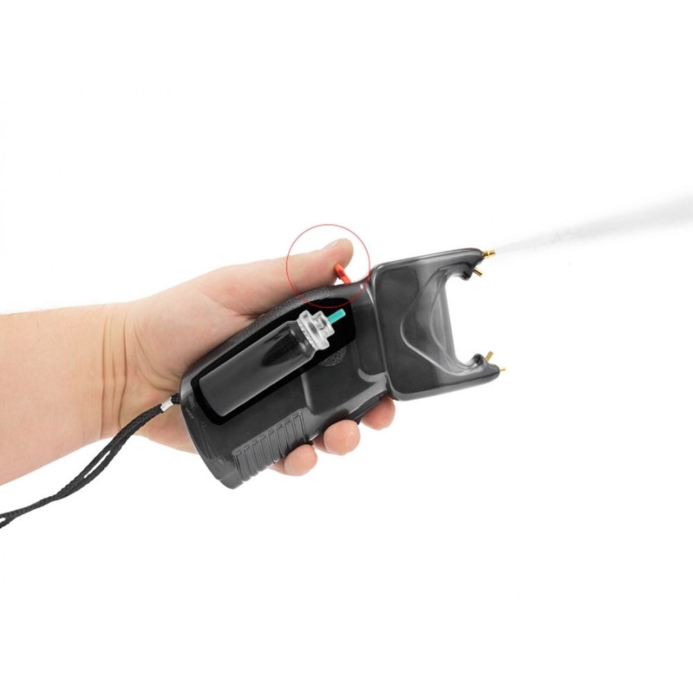 Scorpy Max 500 to najmocniejszy paralizator z wbudowanym miotaczem gazu pieprzowego do samoobrony dostępny bez zezwolenia. Urządzenie doskonale wykorzystuje element zaszkoczenia, ponieważ atakujący widząc paralizator nie spodziewa się że zostanie zaatakowany strumieniem gazu.
