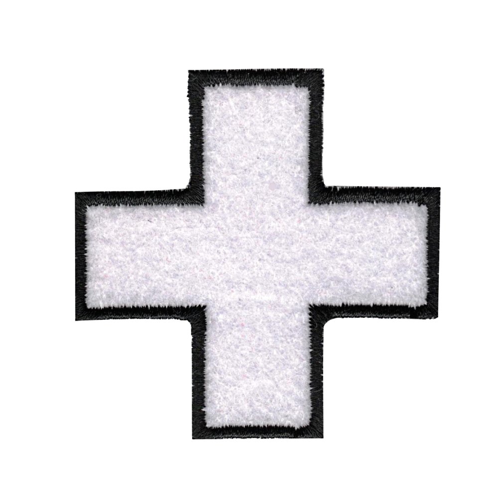 Plakietka Krzyż Medyczny biało-czarny – filcowa naszywka 6,5 × 6,5 cm mocowana na klej. Emblemat identyfikacyjny dla ratowników i służb medycznych.