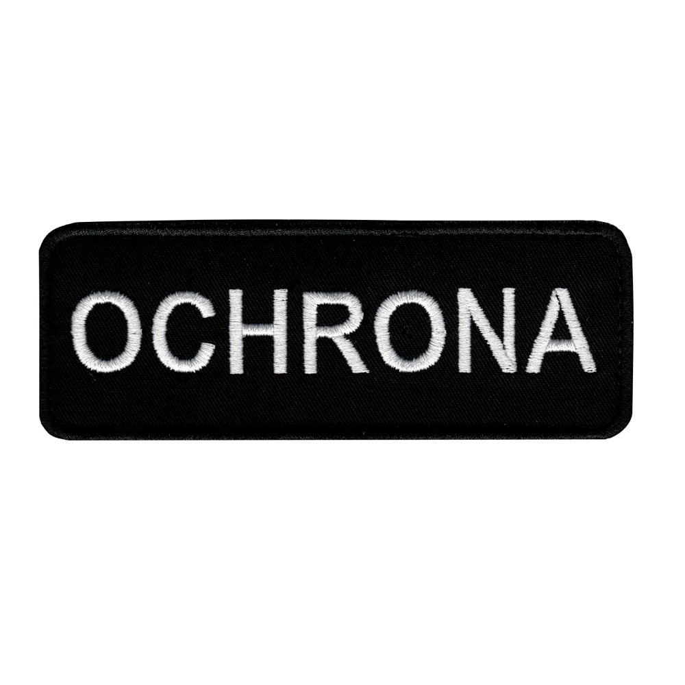 Plakietka Ochrona 10×4 cm – naszywka PVC na rzep z białym napisem