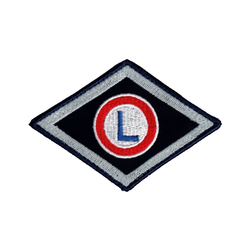 Plakietka Wydział Logistyczny Policji na rzep – haft komputerowy, granatowe tło, obszywana ramka. Wymiary 10 × 7 cm. Producent Maxtex, Polska.