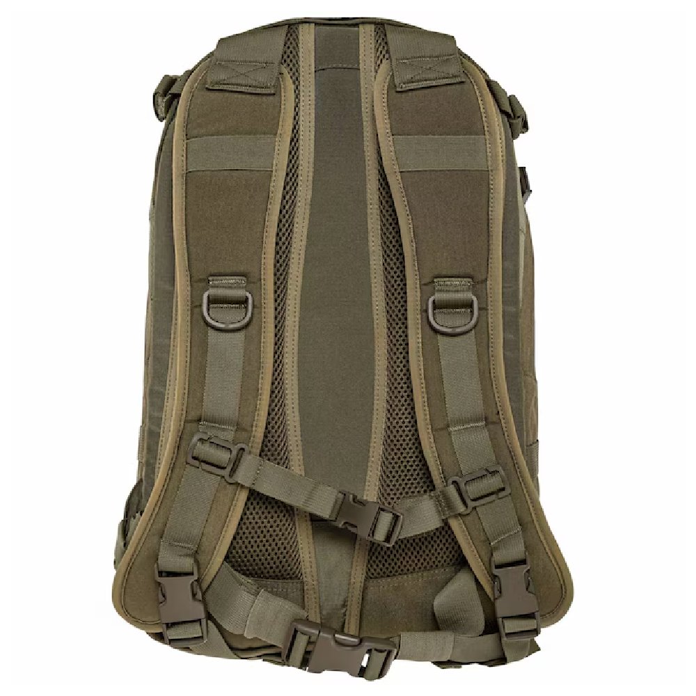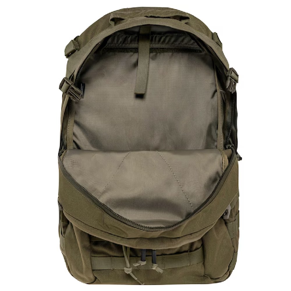 Na powierzchni plecaka znajdują się taśmy zgodne z systemem MOLLE/PALS, umożliwiające montaż dodatkowego wyposażenia. Panel velcro na froncie pozwala na personalizację poprzez naszywki czy Morale Patches.