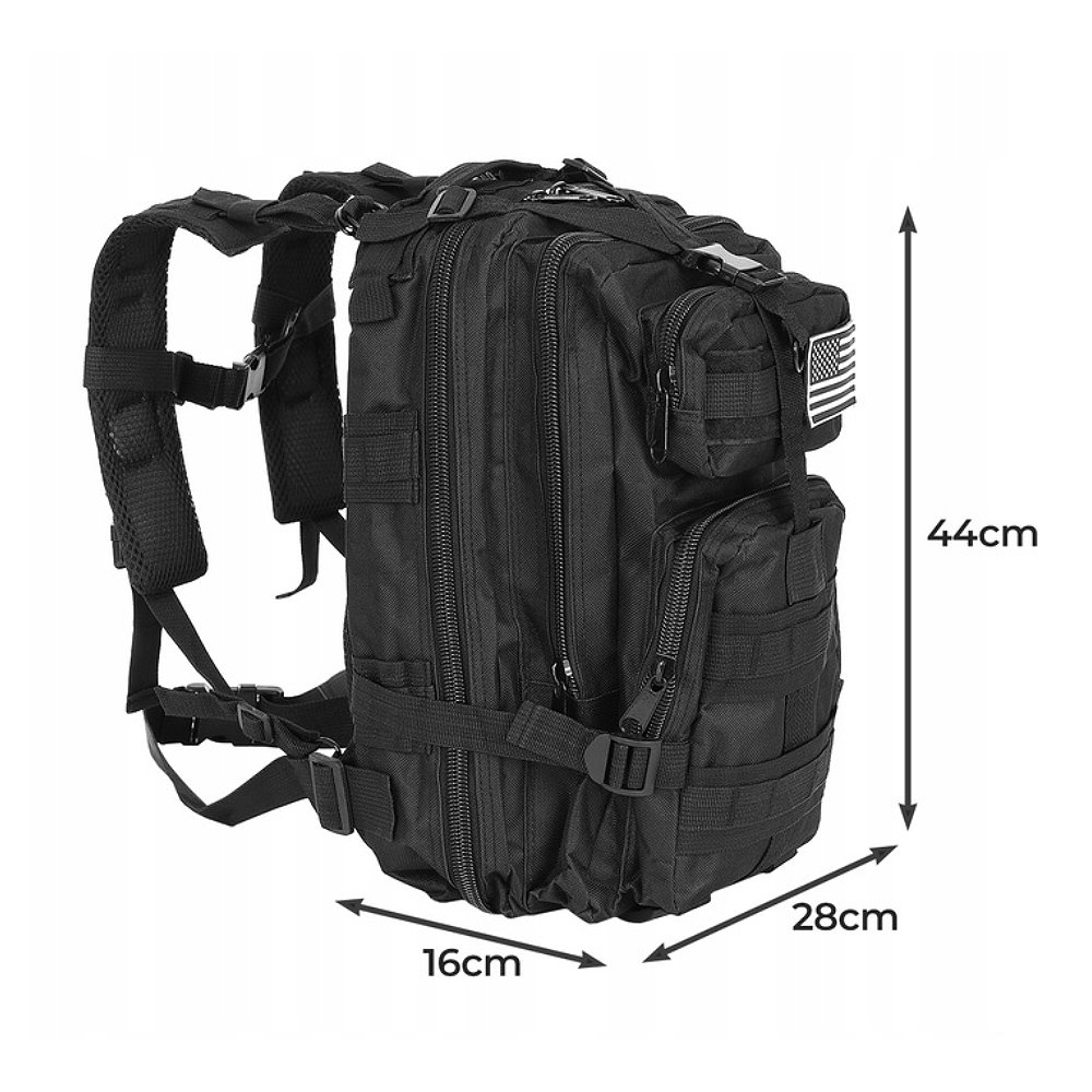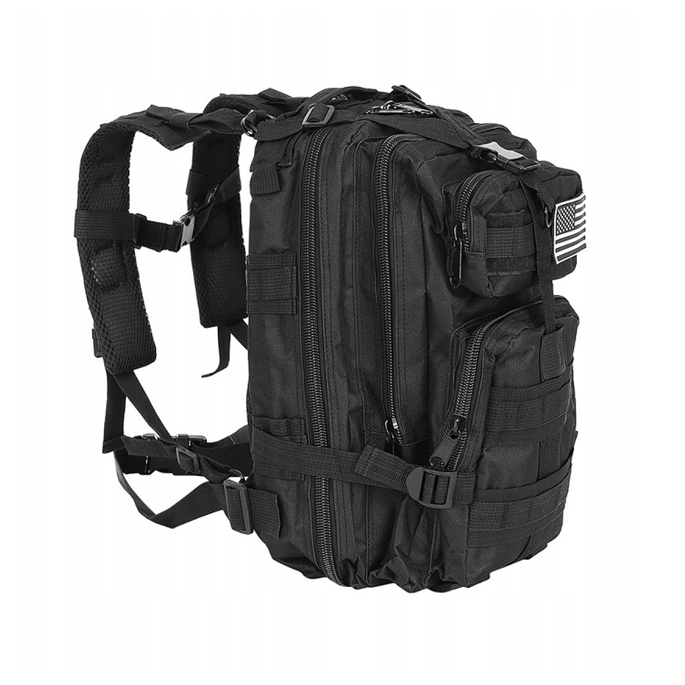 Plecak taktyczny Trizand 26L czarny – wojskowy plecak z systemem MOLLE, 5 komorami i szybkim wypinaniem szelek. Idealny do survivalu, ASG i turystyki.