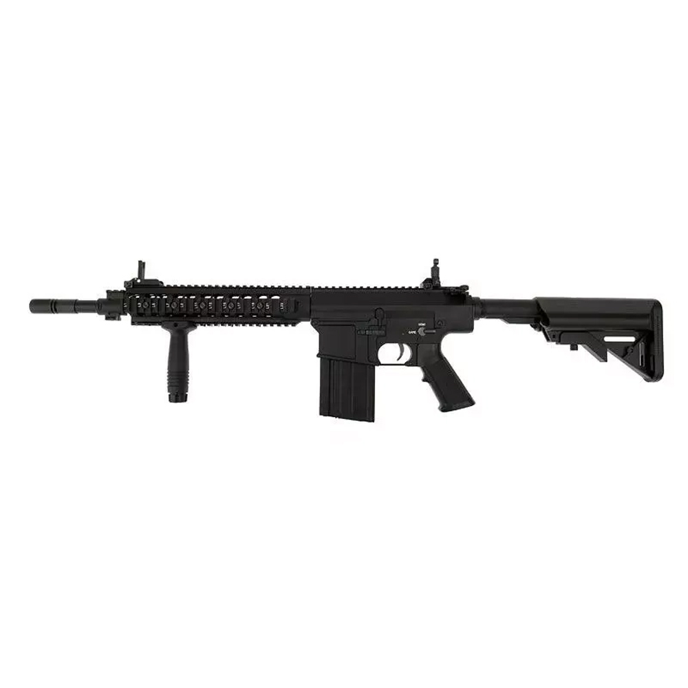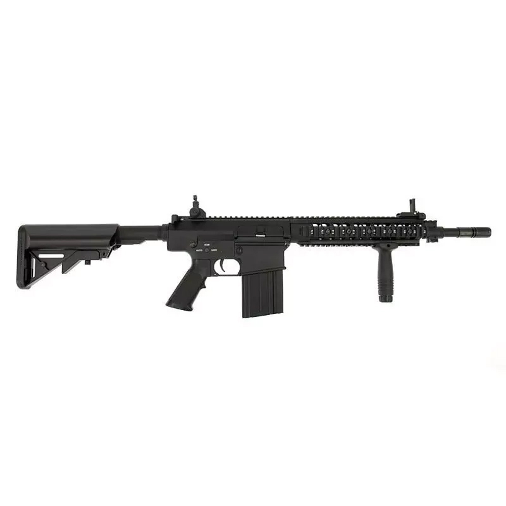Replika karabinu SR25 została wykonana z metalu i wysokiej jakości tworzywa sztucznego. Z tworzywa wykonano profilowany chwyt pistoletowy oraz kolbę, jak również przedni chwyt taktyczny i okładziny szyn RIS. Szyny RIS, korpus oraz lufa zostały wykonane z metalu.