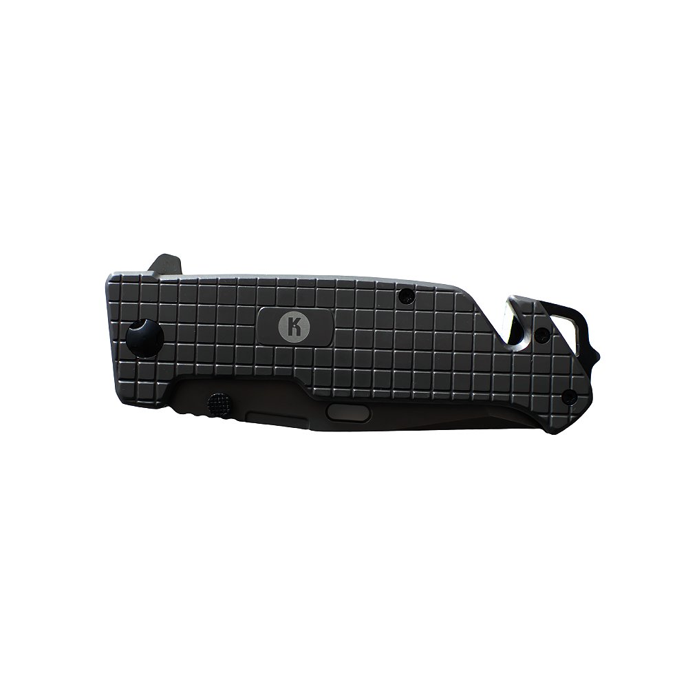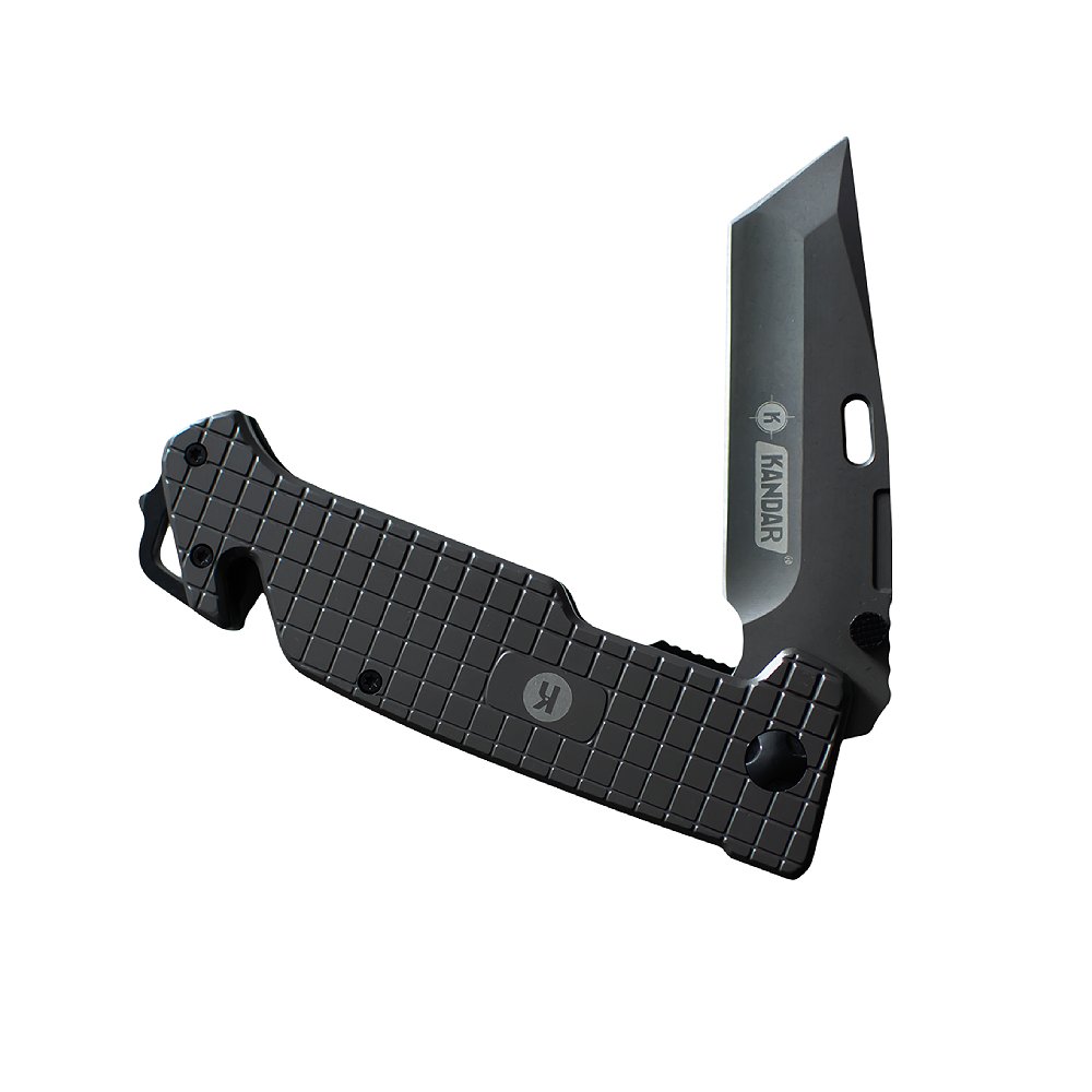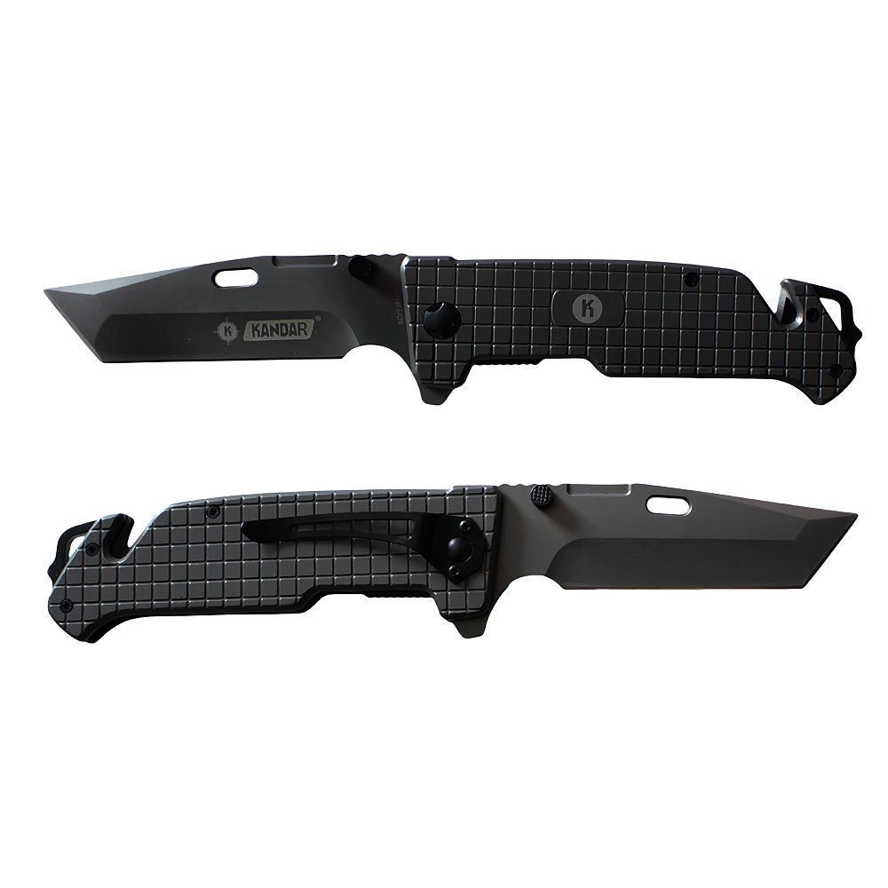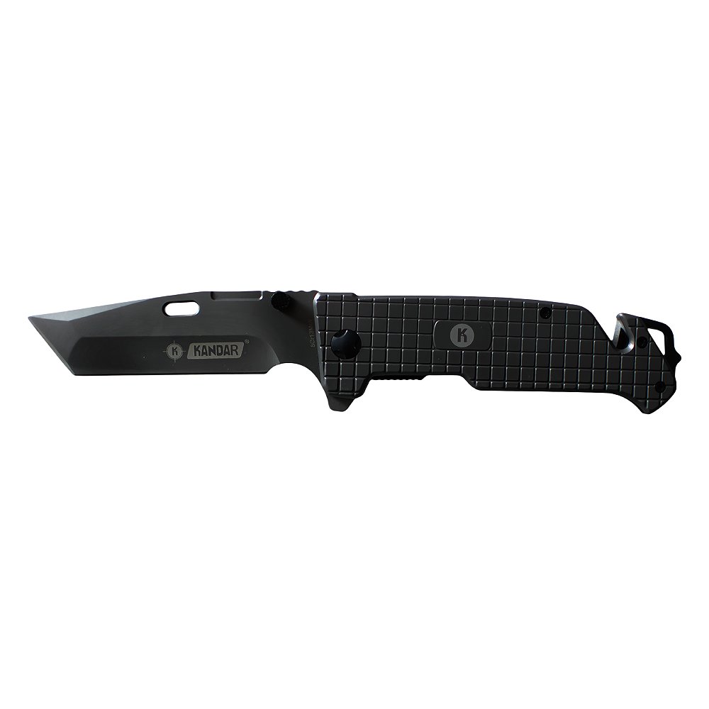 Kandar N19 – składany nóż ratowniczy ze stali nierdzewnej 440 z ostrzem Tanto. Wyposażony w blokadę Liner-Lock, zbijak do szyb, przecinak pasów i klips do paska. Idealny dla służb mundurowych i w survivalu.