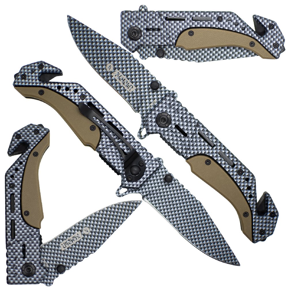 Składany Nóż Ratowniczy Kandar N89 Nóż Taktyczny ze Zbijakiem i Przecinakiem Pasów